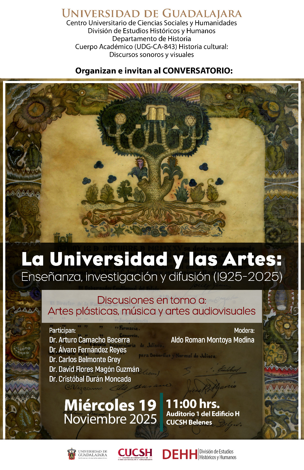 Organizan: Centro Universitario de Ciencias Sociales y Humanidades, División de Estudios Históricos y Humanos, Departamento de Historia y Cuerpo Académico Historia Cultural: Discursos sonoros y visuales.