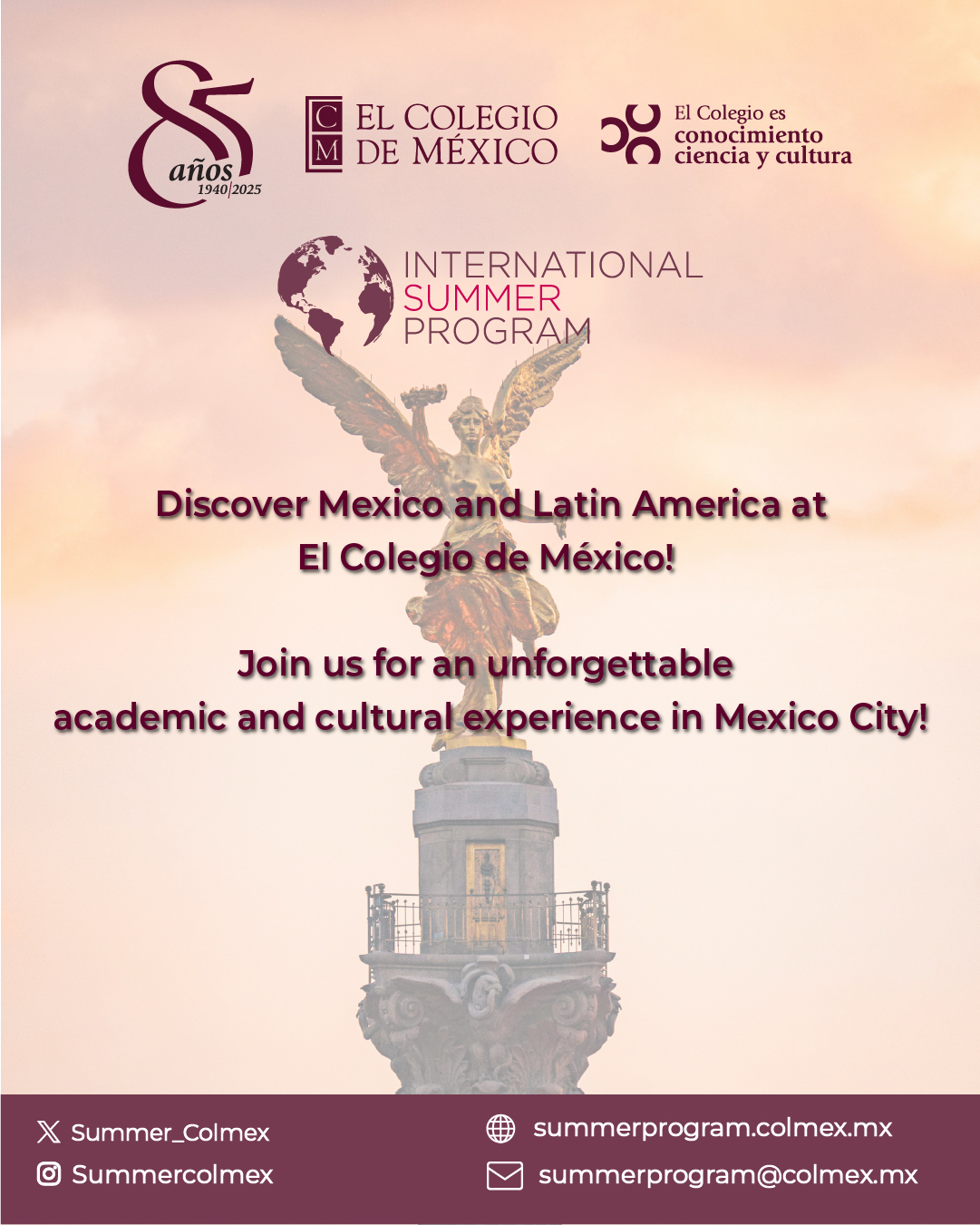Facebook: InternationalSummerProgram | Twitter: @Summer_Colmex | Instagram: @summercolmex