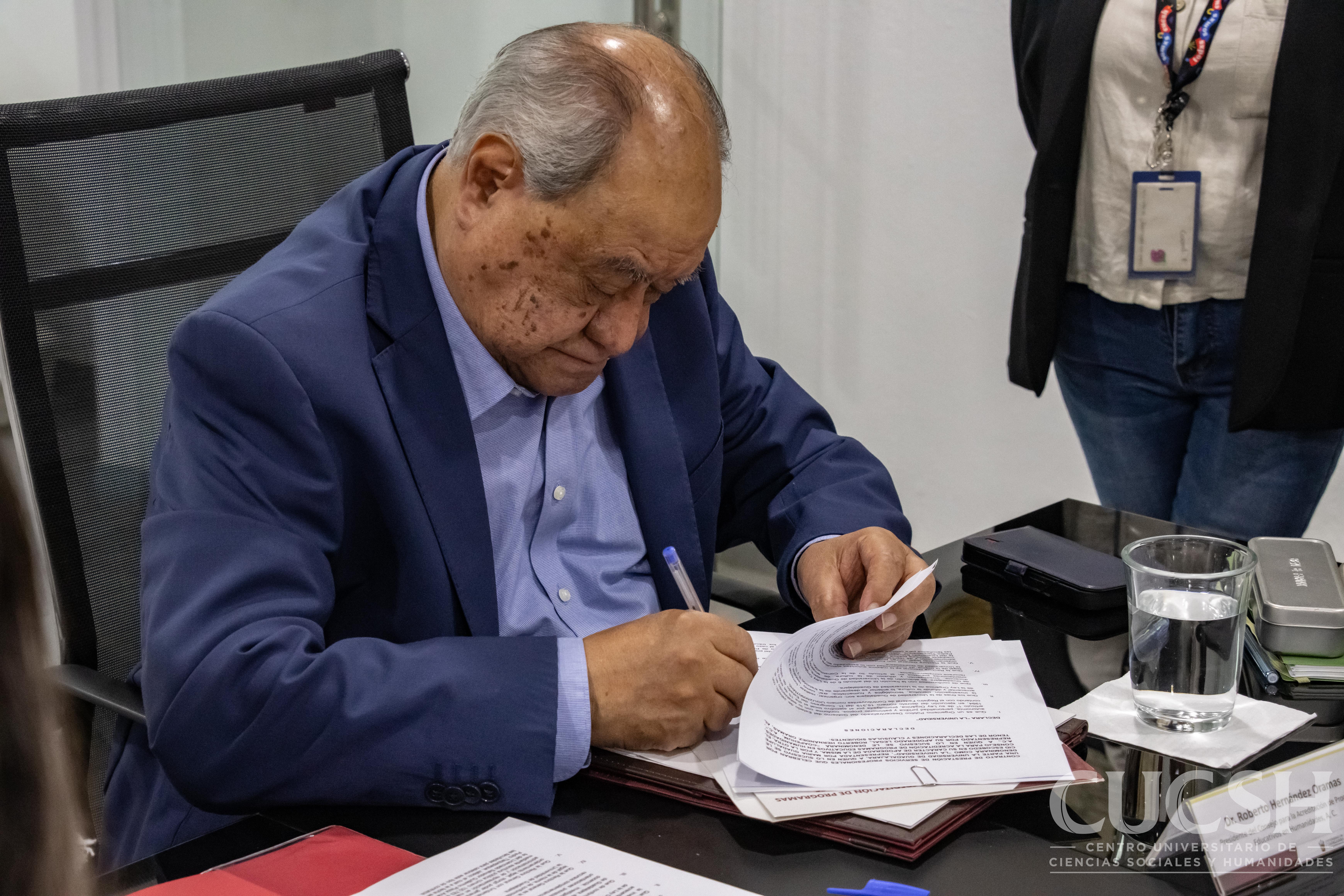 En la sala de juntas de Rectoría del Centro Universitario de Ciencias Sociales y Humanidades (CUCSH) de la Universidad de Guadalajara, se llevó a cabo la firma del contrato para la reacreditación de los programas educativos ante el Consejo para la Acreditación de Programas Educativos en Humanidades, A.C. (COAPEHUM).