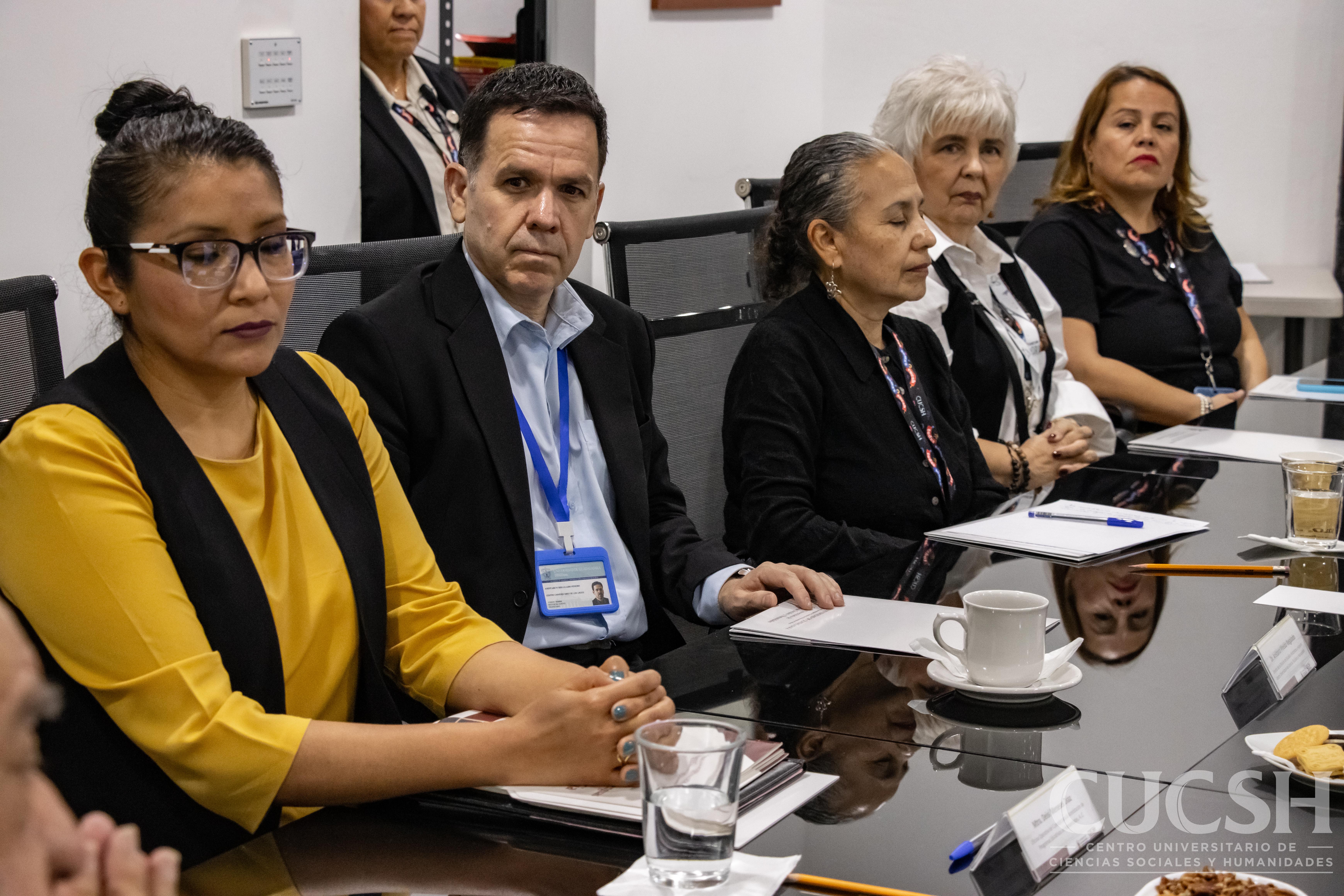 El acto estuvo encabezado por la Dra. Dulce María Zúñiga Chávez, rectora del CUCSH; la Dra. Patricia Córdova Abundis, secretaria académica; la Lic. Nallely Robles Ortiz, secretaria administrativa; el Dr. Aristarco Regalado Pinedo, director de la División de Estudios Históricos y Humanos; y el Dr. Gabriel Barrón Pérez, coordinador de Docencia. Por parte del COAPEHUM, participaron el Dr. Roberto Hernández Oramas, presidente del Consejo y la Mtra. Deisi Meneses Díaz, representante de la oficina operativa del organismo.