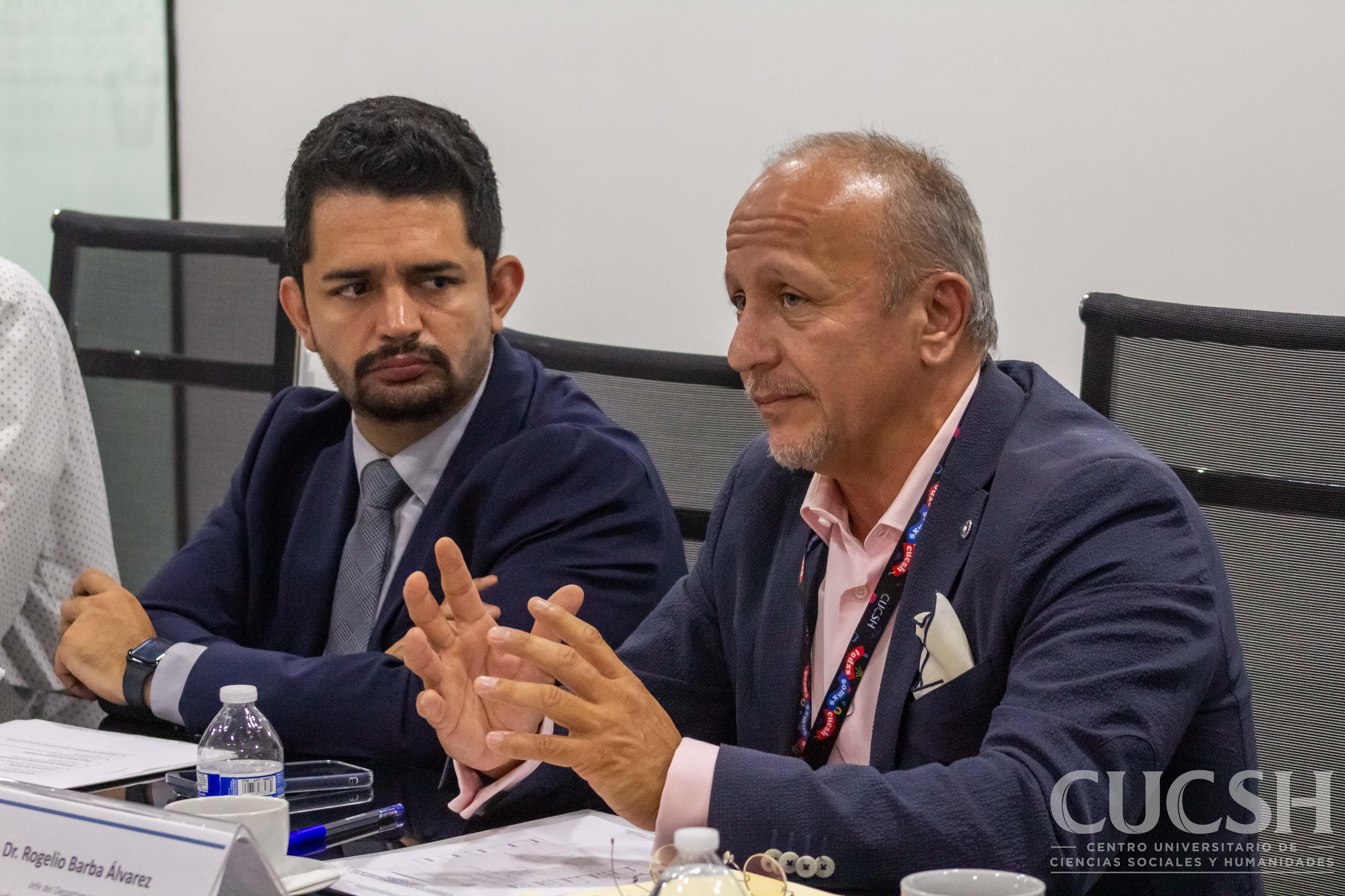 En el acto inaugural estuvieron presentes autoridades y académicos del CUCSH, entre ellos la Dra. Patricia Córdova Abundis, secretaria académica del centro; la Dra. Karla Fabiola Vega Ruiz, directora de la División de Estudios Jurídicos; el Mtro. José Álvaro Fernández González, secretario de la División de Estudios Jurídicos; el Dr. Rogelio Barba Álvarez, jefe del Departamento de Estudios Interdisciplinares en Ciencias Penales; el Dr. Gabriel Barrón Pérez, coordinador de Docencia; y el Mtro. José de Jesús Aceves Castañón, coordinador de la Licenciatura en Criminología. También se contó con la participación del Lic. Luis Fernando Peniche Giordani, consejero del CONAED, así como de la Mtra. Sandra Vázquez, coordinadora del comité evaluador, el Dr. Marco Luigi Iannacone y la Mtra. Brianda Cortés, pares académicos responsables de la evaluación.