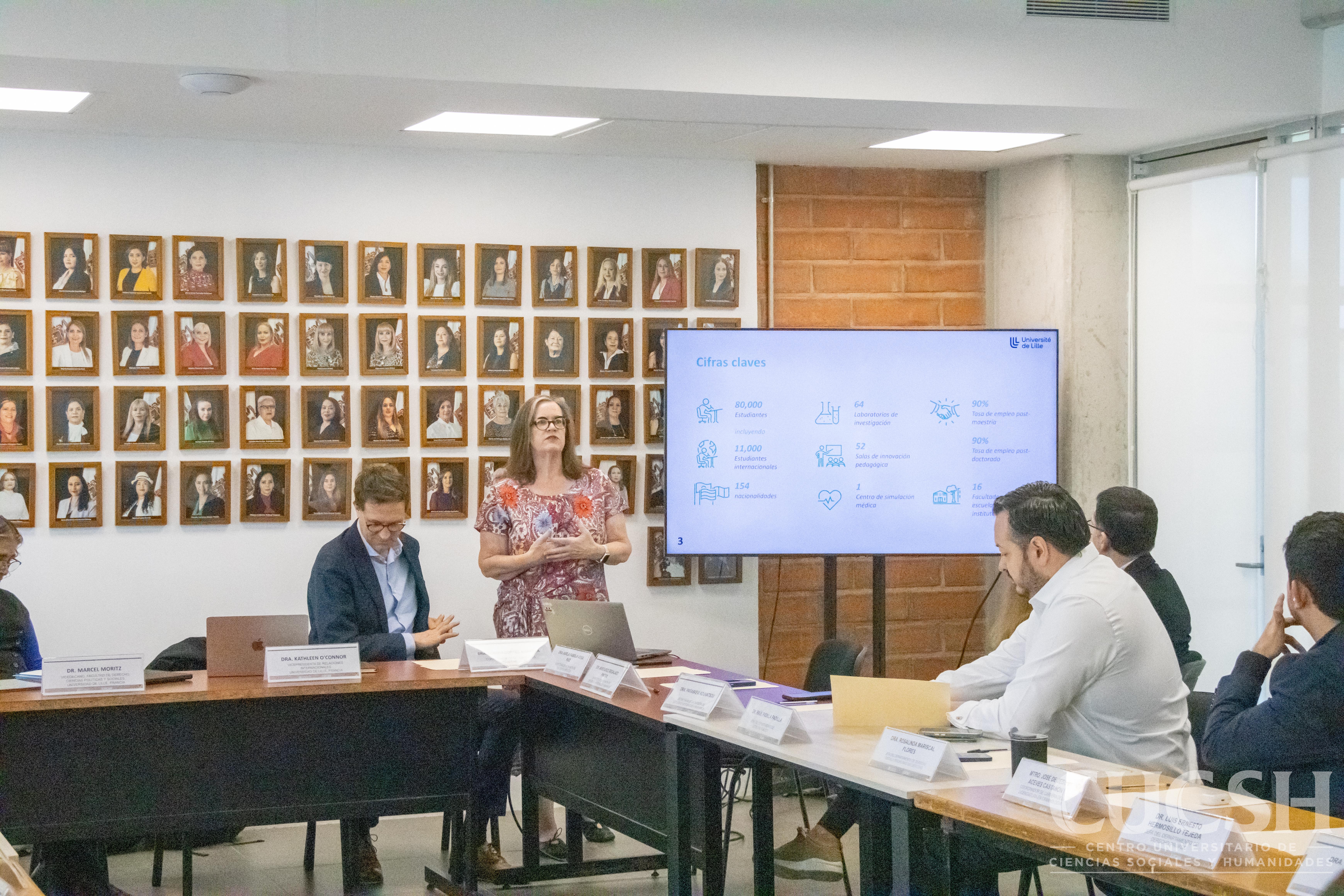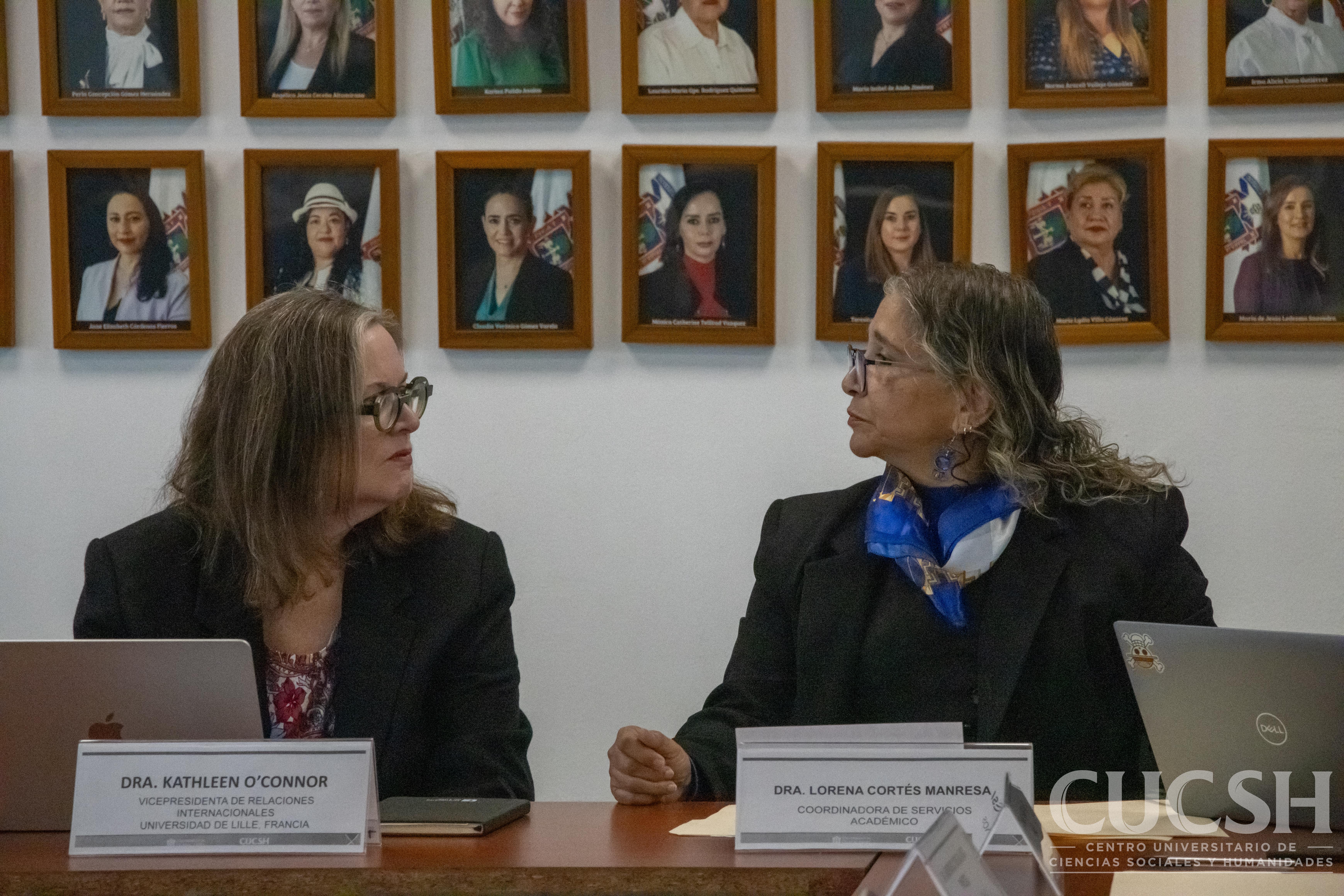A la reunión asistieron representantes de la Université de Lille, la Dra. Kathleen O’Connor, Vicepresidenta de Relaciones Internacionales y el Dr. Marcel Moritz, Vicedecano de la Facultad de Derecho, Ciencias Políticas y Sociales. Por parte del CUCSH, participó la Dra. Dulce María Zúñiga, Rectora; la Mtra. Montserrat Molina Díaz, Coordinadora de Internacionalización; la Dra. Lorena Cortés Manresa, Coordinadora de Servicios Académicos; y los directores de División del CUCSH. Además, asistieron jefes de departamento, coordinadores y profesores invitados, quienes acompañaron el diálogo con el objetivo de abrir nuevas oportunidades de cooperación.