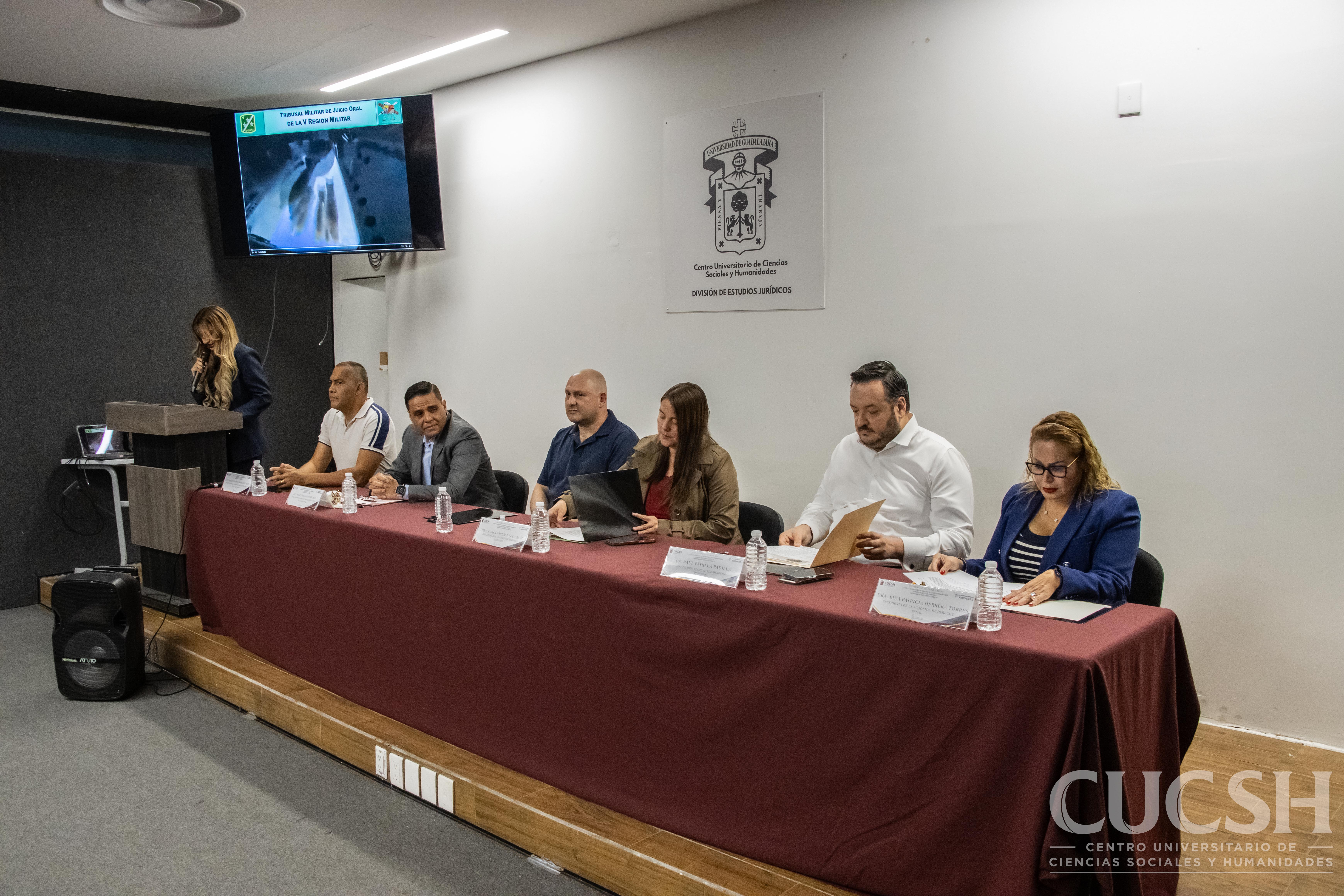 El evento contó con la participación del Coronel de Justicia Militar y juez presidente, Lic. Marco Antonio Hernández Reyes, y del juez Teniente Coronel de Justicia Militar, Lic. Hugo Vargas Covarrubias, ambos especialistas en materia castrense. La sesión fue moderada por la Dra. Elba Patricia Herrera Torres, presidenta de la Academia de Derecho Penal del CUCSH.