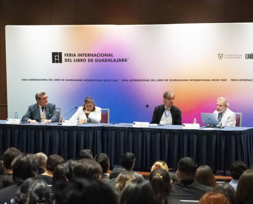 El Director de la División de Estudios Jurídicos del CUCSH, doctor Carlos Ramiro Ruiz Moreno, moderó la mesa en el auditorio del Hotel Barceló, sede de FIL Pensamiento.