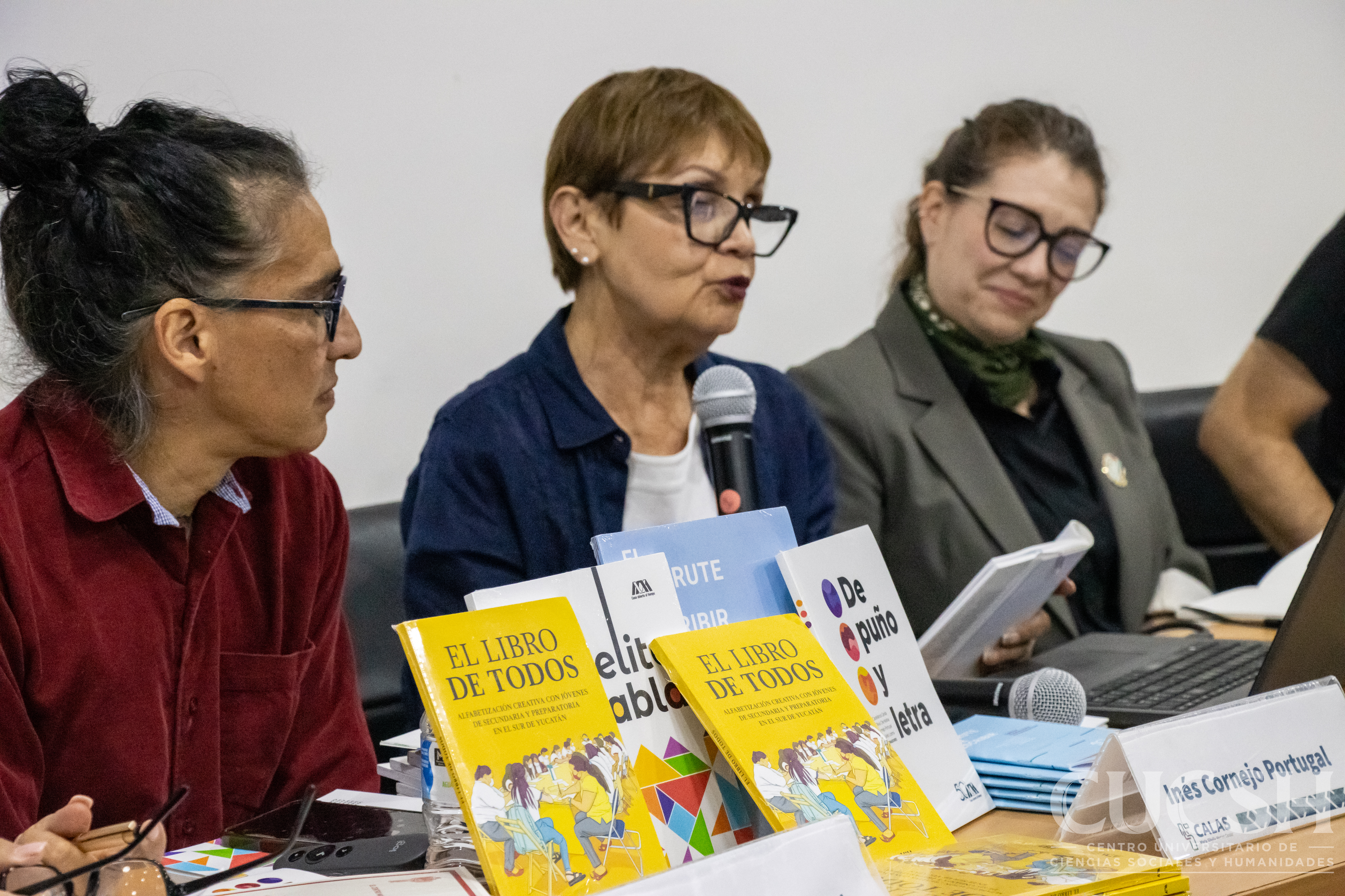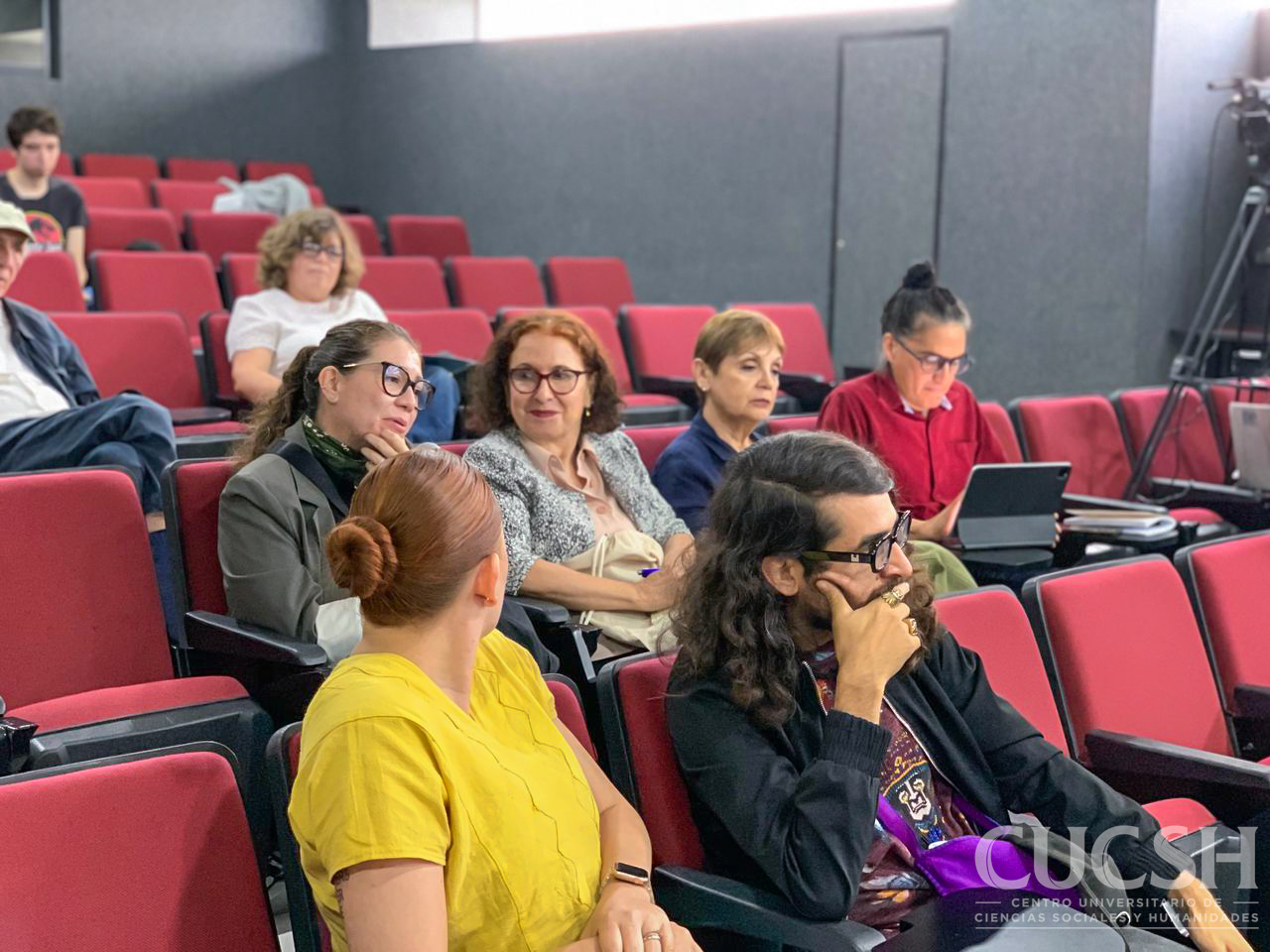 Durante la sesión del 21 de octubre en el CUCSH, participaron investigadores de diversas localidades (México, Colombia, Alemania, Ecuador y Argentina) en las mesas “Horizontalidad e inclusión”, “Experiencias con inteligencia artificial y medios digitales en la educación” y “Experiencias y saberes de la educación”. Además, se presentó una muestra artística del Taller Gráfica Mezcala, en la que participaron María Asunción Moreno Cisneros y sus estudiantes, quienes compartieron obras que dialogan con la identidad, el territorio y la memoria colectiva.