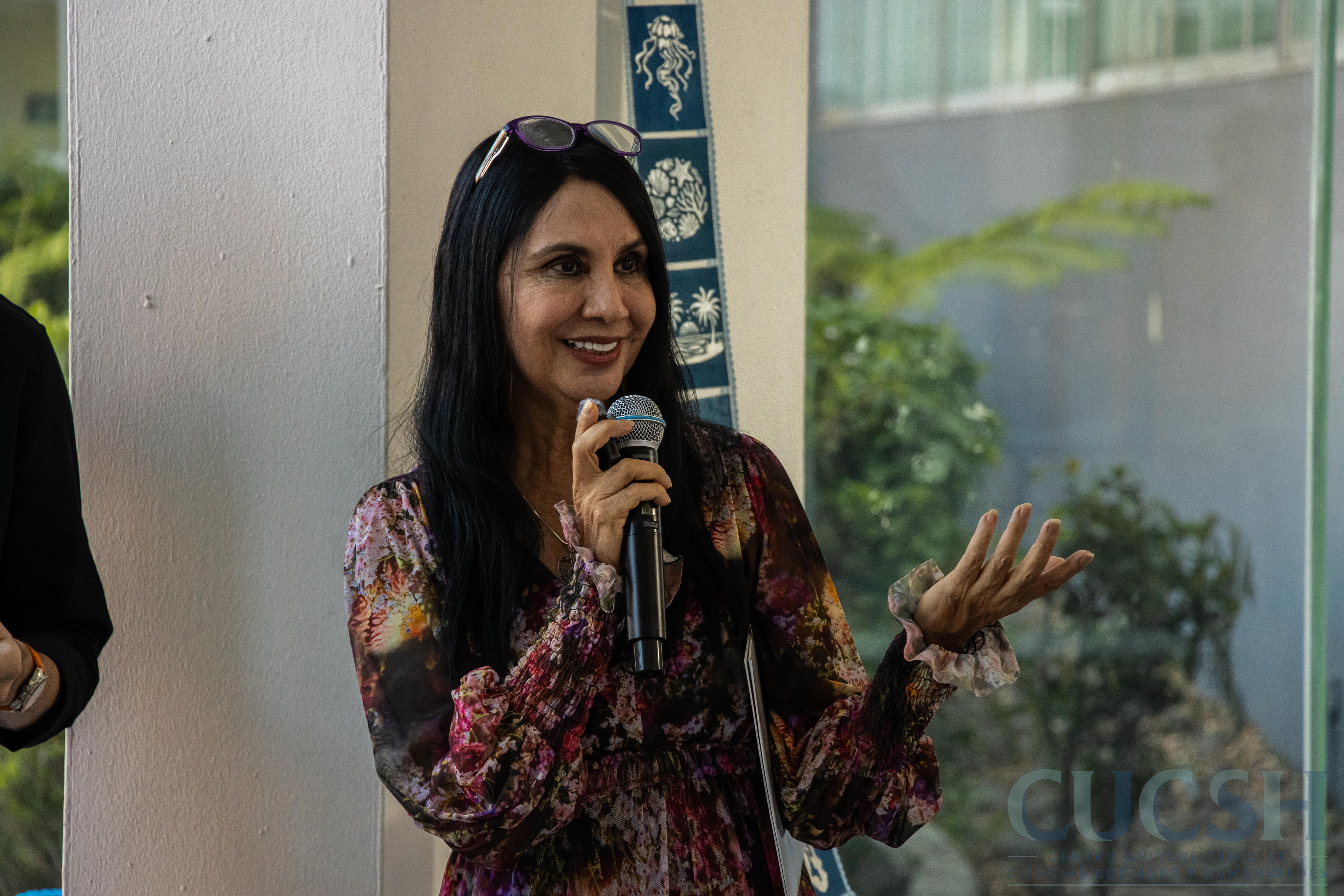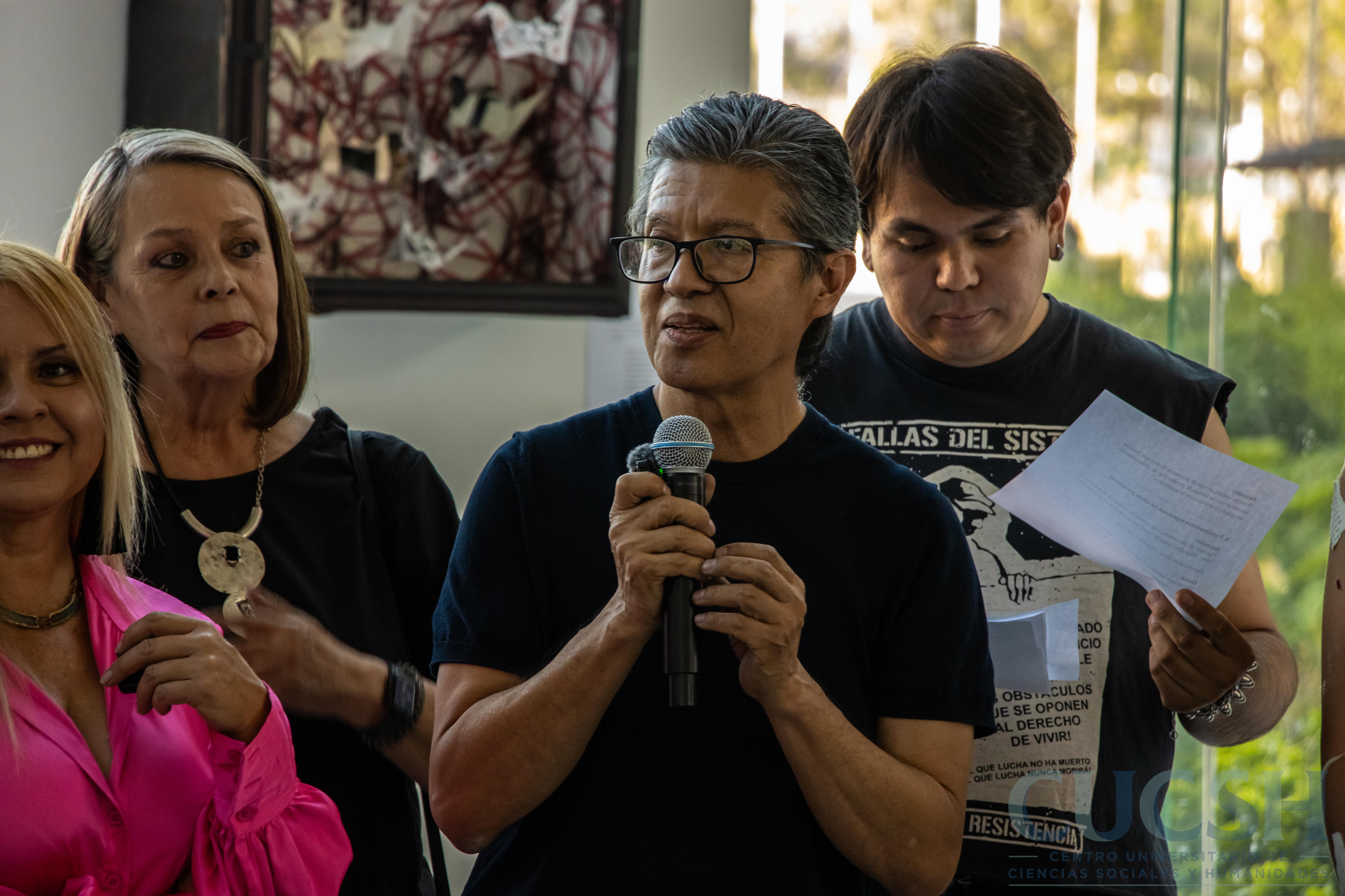 El acto inaugural estuvo encabezado por la rectora del CUCSH, la Dra. Dulce María Zúñiga Chávez, quien, en compañía de la Mtra. Piedad Fernández Cortés, dio apertura formal a esta muestra que articula el trabajo colectivo de estudiantes, docentes y artistas de la comunidad universitaria.