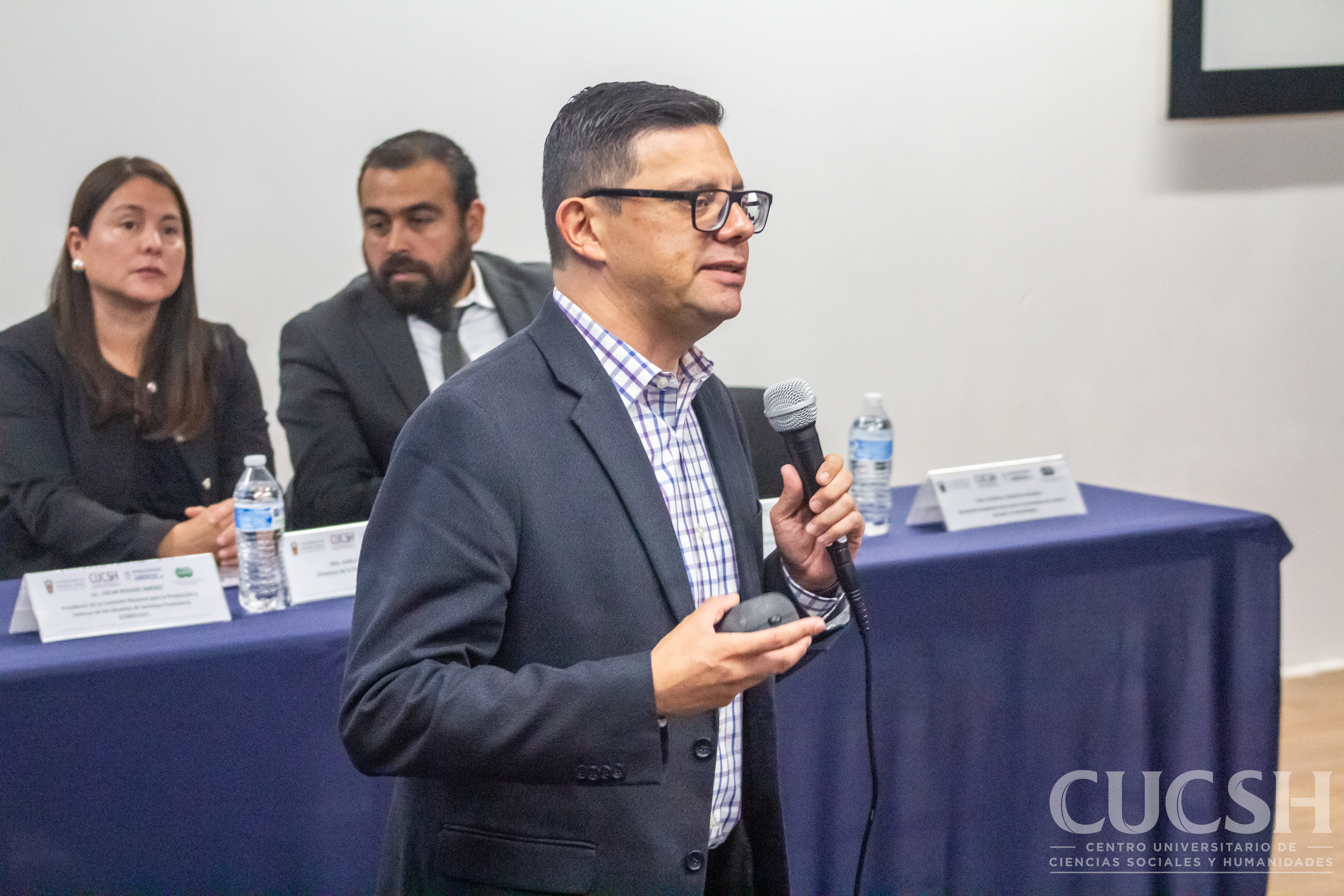En representación de la rectora del CUCSH, Dra. Dulce María Zúñiga Chávez, la Dra. Patricia Córdova dio la bienvenida a los ponentes, destacando que este tipo de eventos fortalecen la formación integral de los estudiantes: “El CUCSH acoge a una comunidad de aproximadamente 12,000 estudiantes y 800 profesores, y esta iniciativa representa un esfuerzo claro de vinculación con el sector público y privado, lo cual legitima y enriquece nuestros programas educativos”.
