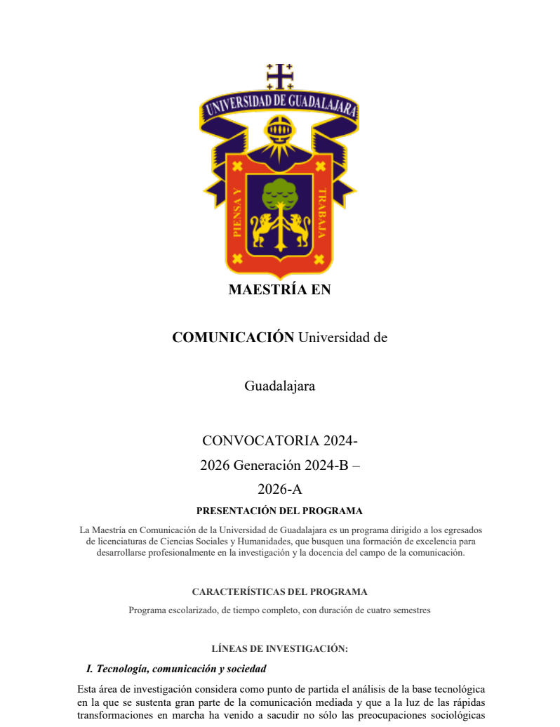 MAESTRÍA EN COMUNICACIÓN CONVOCATORIA 2024-2026 Generación 2024-B–2026-A