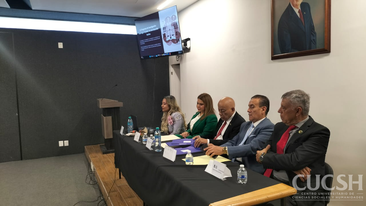 La ceremonia contó con la presencia de destacadas personalidades del ámbito jurídico. En la mesa del presídium participaron la doctora Elizabeth Souza Mosqueda, profesora investigadora del CUCSH; el doctor Sergio Navarro Gómez, presidente del Ilustre Colegio de Juristas del Estado de Jalisco A.C.; la ponente, doctora Lucero Moreno Murguía, profesora investigadora del Centro Universitario de Tonalá; el maestro Ian Segovia Mejía, en representación del regidor de Guadalajara, José María Martínez Martínez; y el coronel José Ángel Duarte Quintana, representante de la Confederación de Militares y Profesionistas General Marcelino García Barragán.