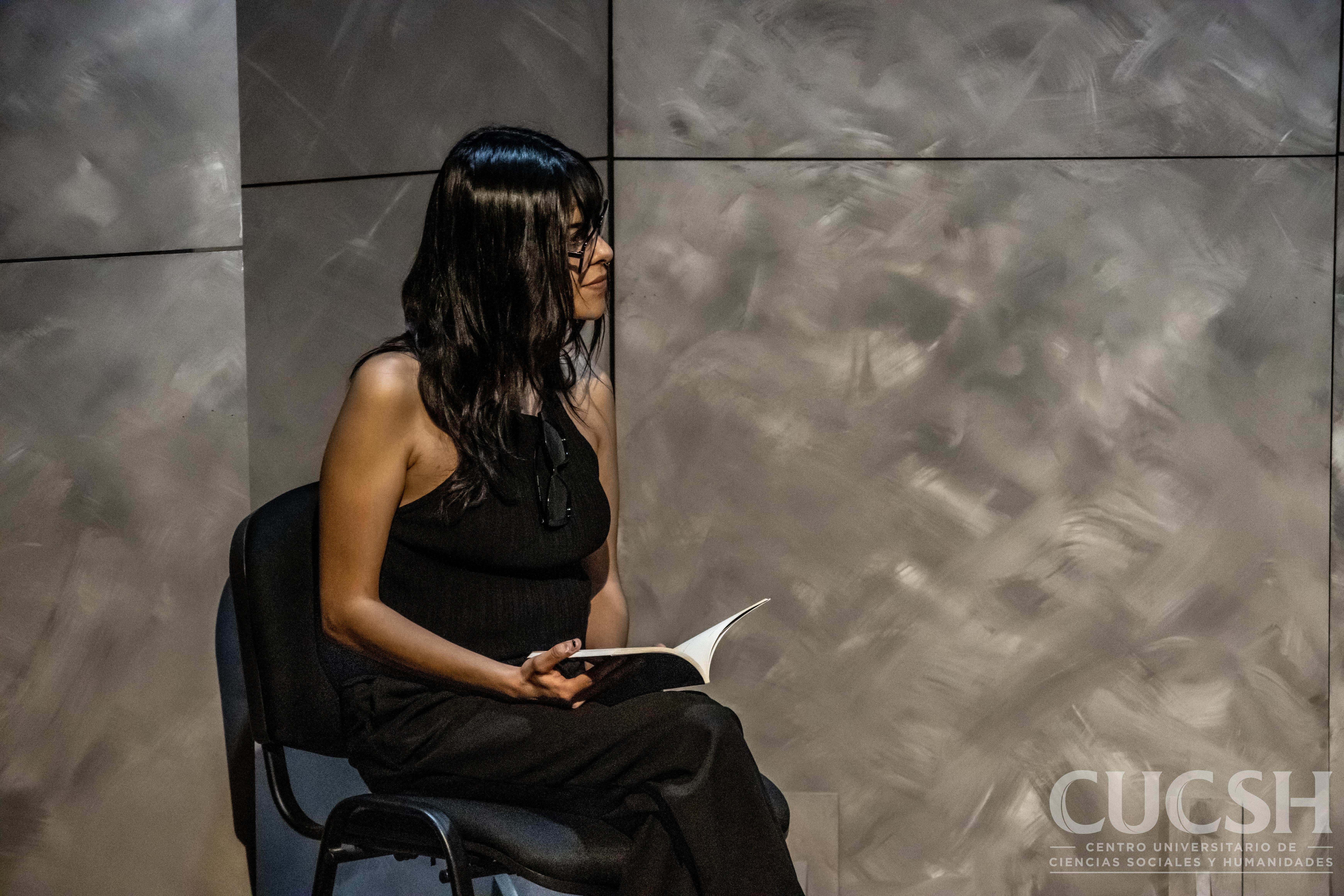 En el Teatro Jurídico del Centro Universitario de Ciencias Sociales y Humanidades (CUCSH), y bajo la organización de la Coordinación de Cuidados, la dramaturga Diana Tada presentó de manera performática su libro PASOS, en un ejercicio escénico que acercó al público a la esencia conceptual y dramatúrgica de su obra.