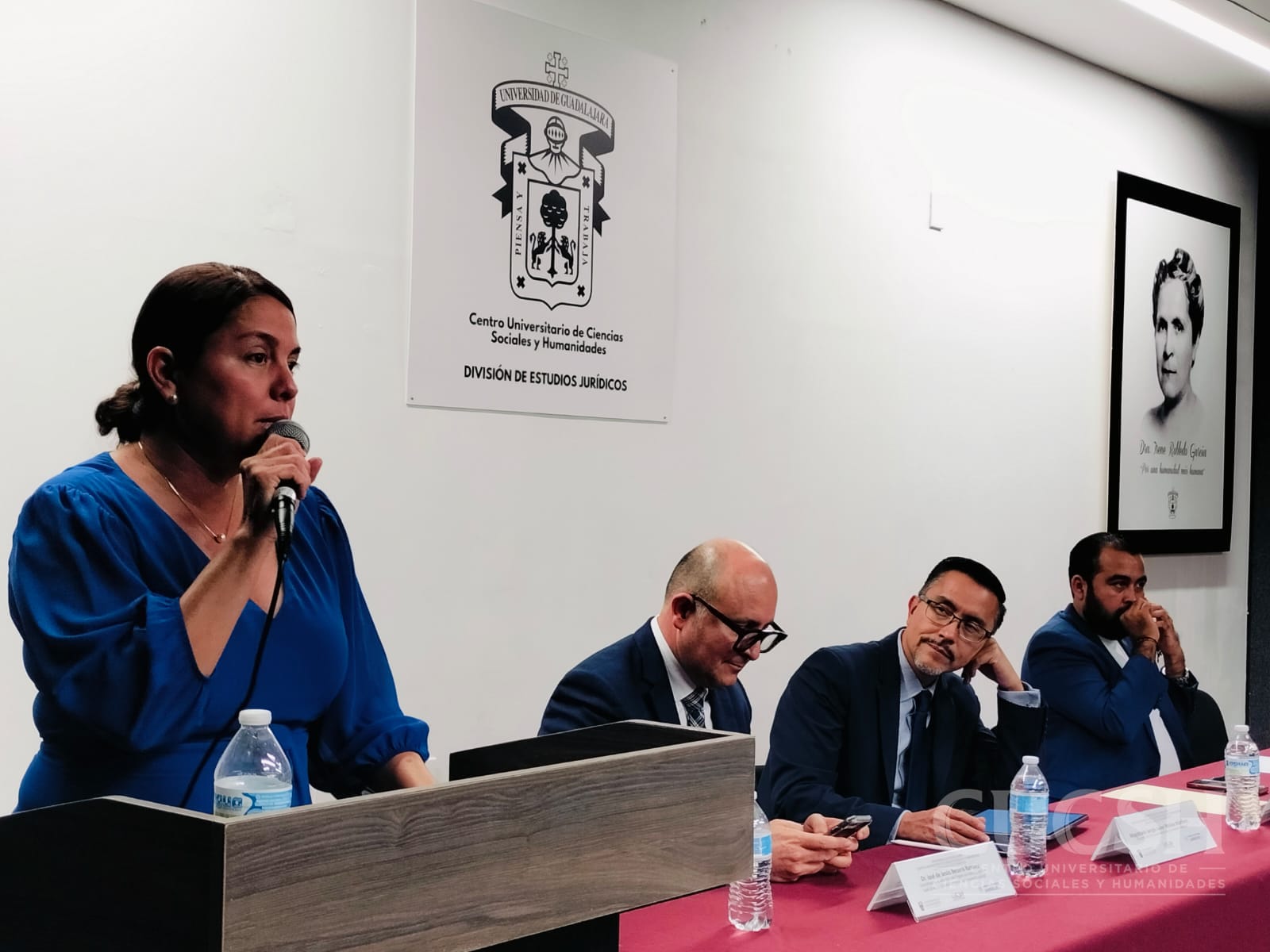 La Dra. Karla Fabiola Vega Ruiz subrayó la importancia académica del encuentro: “Para el CUCSH y para la División de Estudios Jurídicos este día es de especial relevancia. Contar con la presencia del Dr. Sergio Javier Molina Martínez constituye un privilegio académico”, subrayó. Además mencionó que esta conferencia “no solo nos invita a reflexionar sobre dos de los procesos de transformación más importantes de la vida jurídica del país, sino que también nos ayuda a comprender cómo estos cambios reconfiguran la manera en que concebimos la justicia y la labor del Estado en garantizarla”.