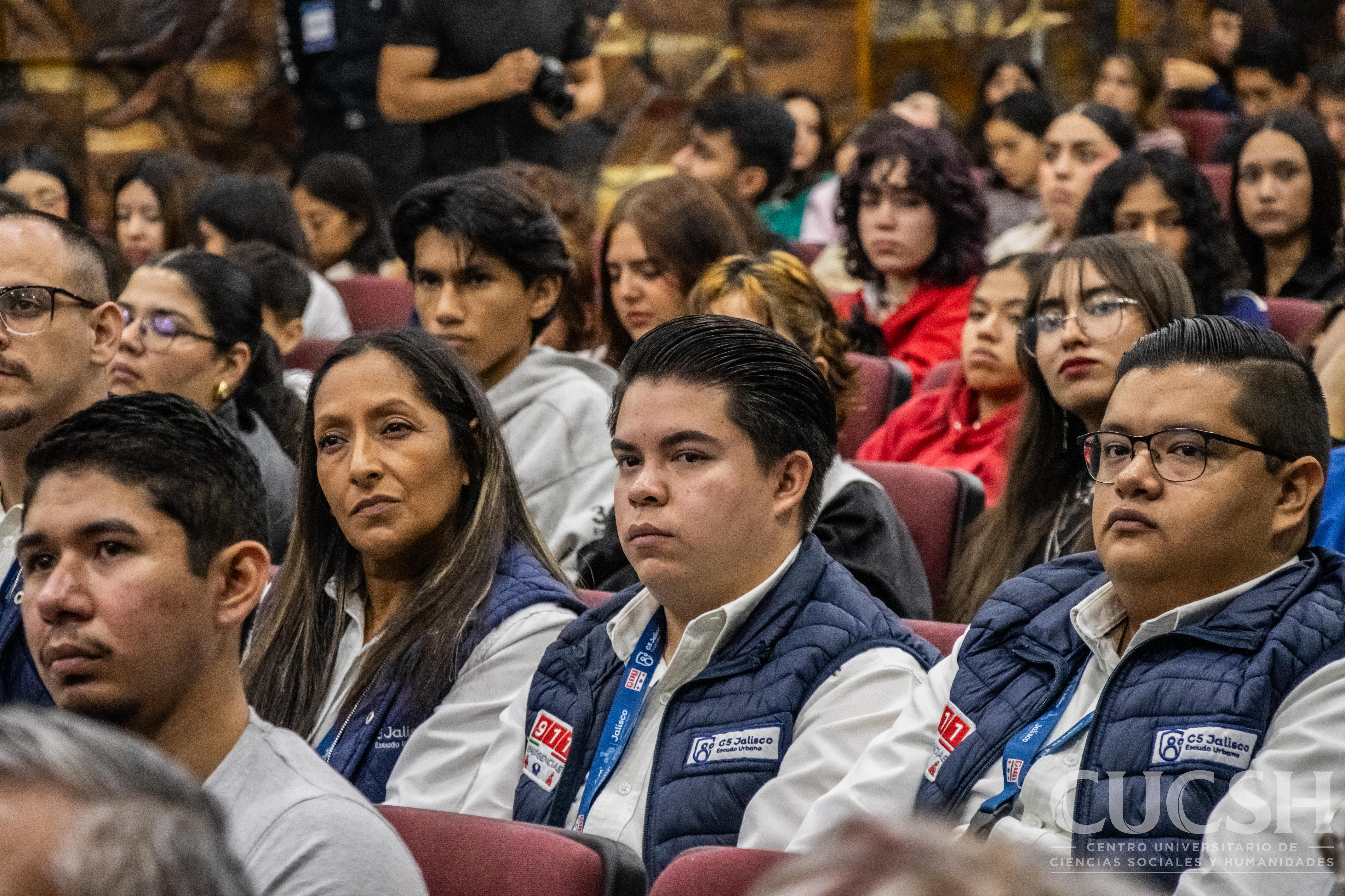 En el auditorio Rosario Castellanos del Centro Universitario de Ciencias Sociales y Humanidades (CUCSH) se llevó a cabo el encuentro “Voces que buscan: Encuentro universitario por la esperanza y la prevención”, una jornada impulsada por la División de Estudios Jurídicos en colaboración con la Secretaría de Inteligencia y Búsqueda de Personas del Estado de Jalisco.