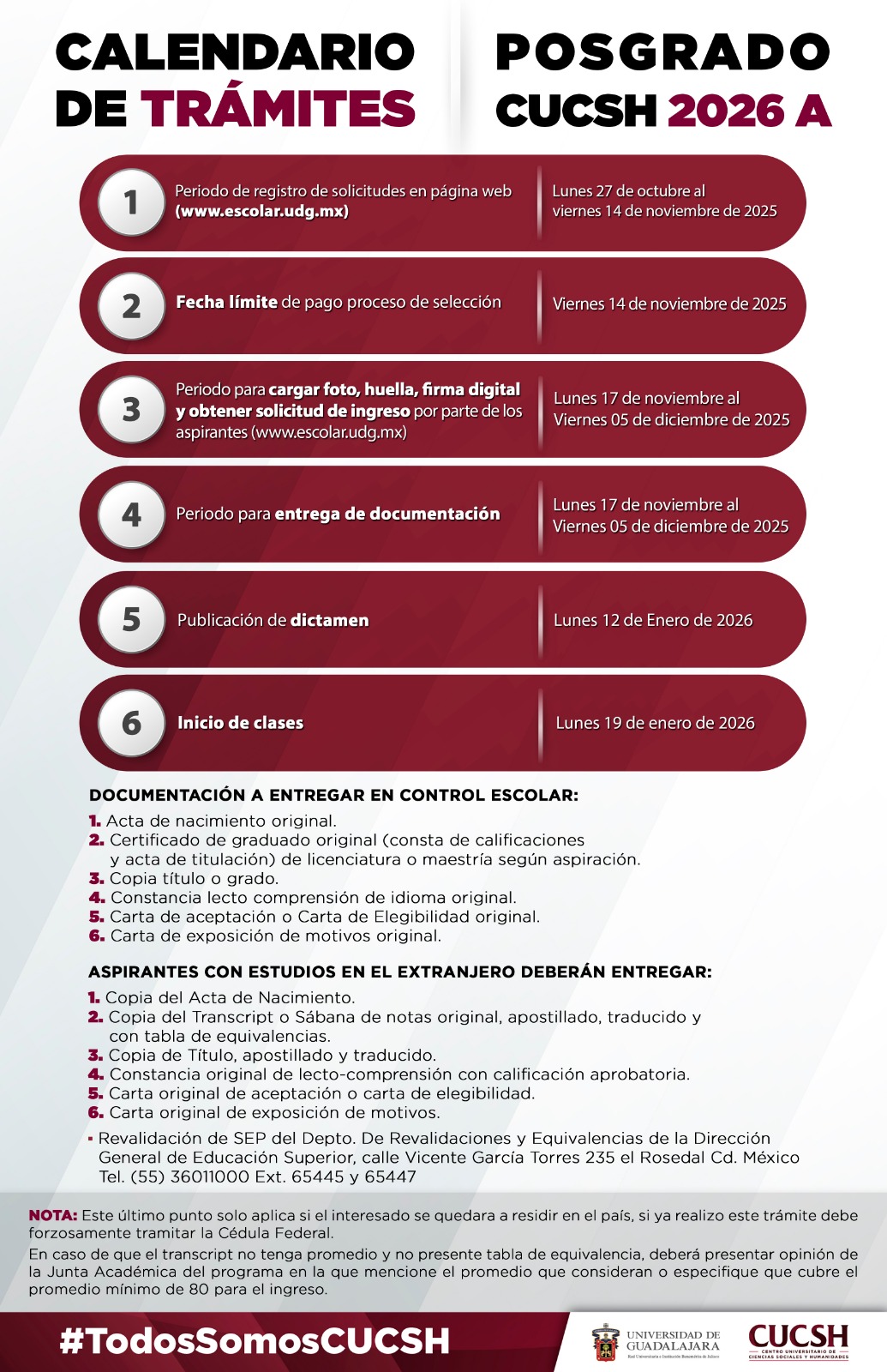 Ya está disponible el Calendario de Trámites para el ciclo 2026-A.