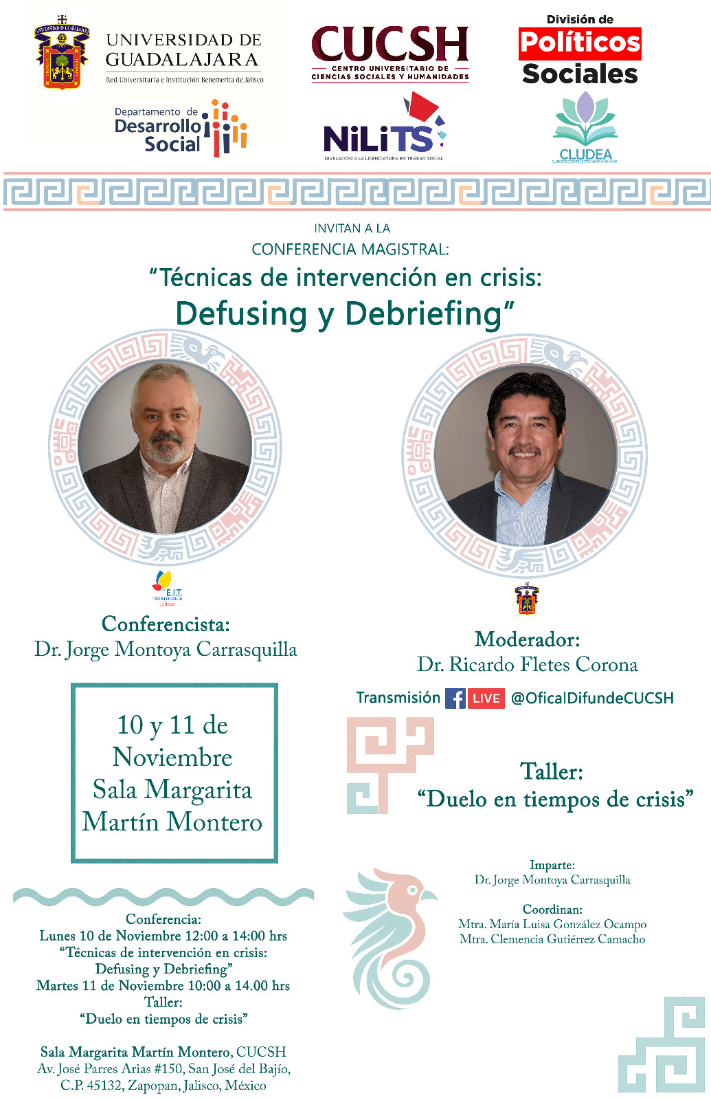 La Universidad de Guadalajara a través del Centro Universitario de Ciencias Sociales y Humanidades (CUCSH), el Departamento de Desarrollo Social, NiLiTS y CLUDEA, te invitan a la Conferencia Magistral: