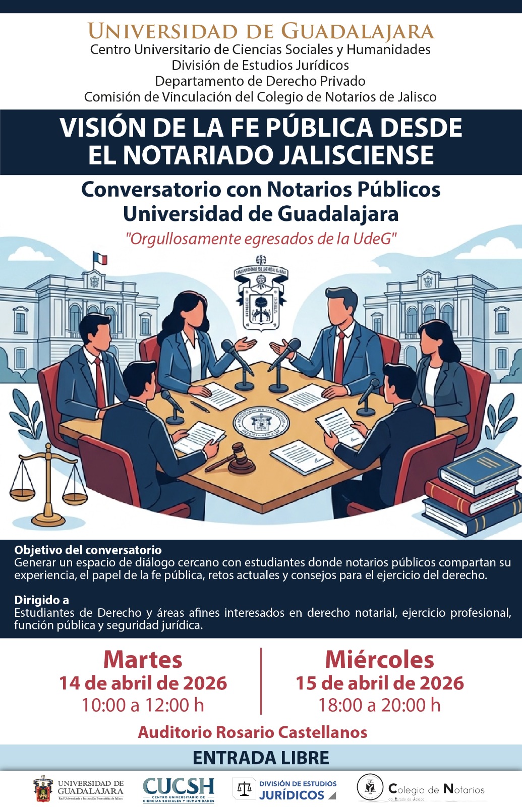 Te invitamos al Conversatorio con Notarios Públicos: “Visión de la Fe Pública desde el Notariado Jalisciense”.