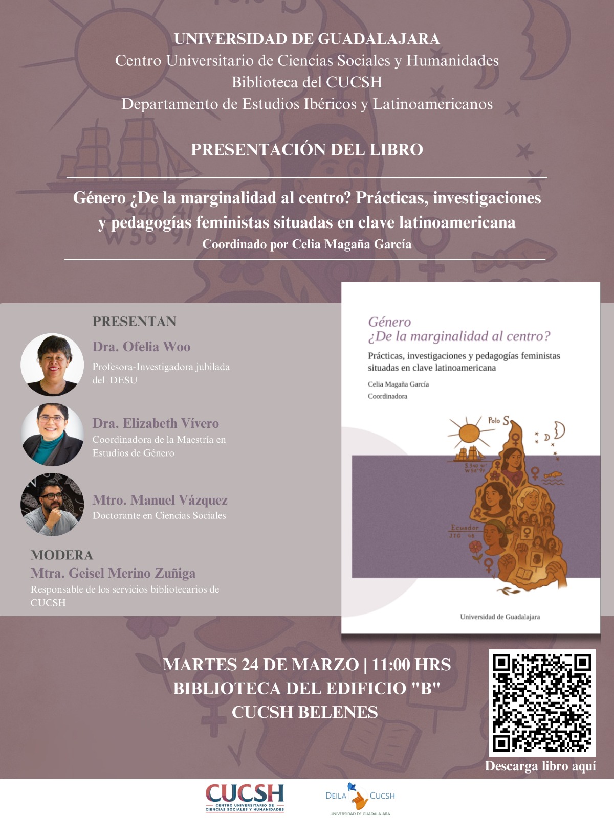 Te invitamos a la presentación del libro: “Género ¿De la marginalidad al centro? Prácticas, investigaciones y pedagogías feministas situadas en clave latinoamericana”, coordinado por Celia Magaña García.
