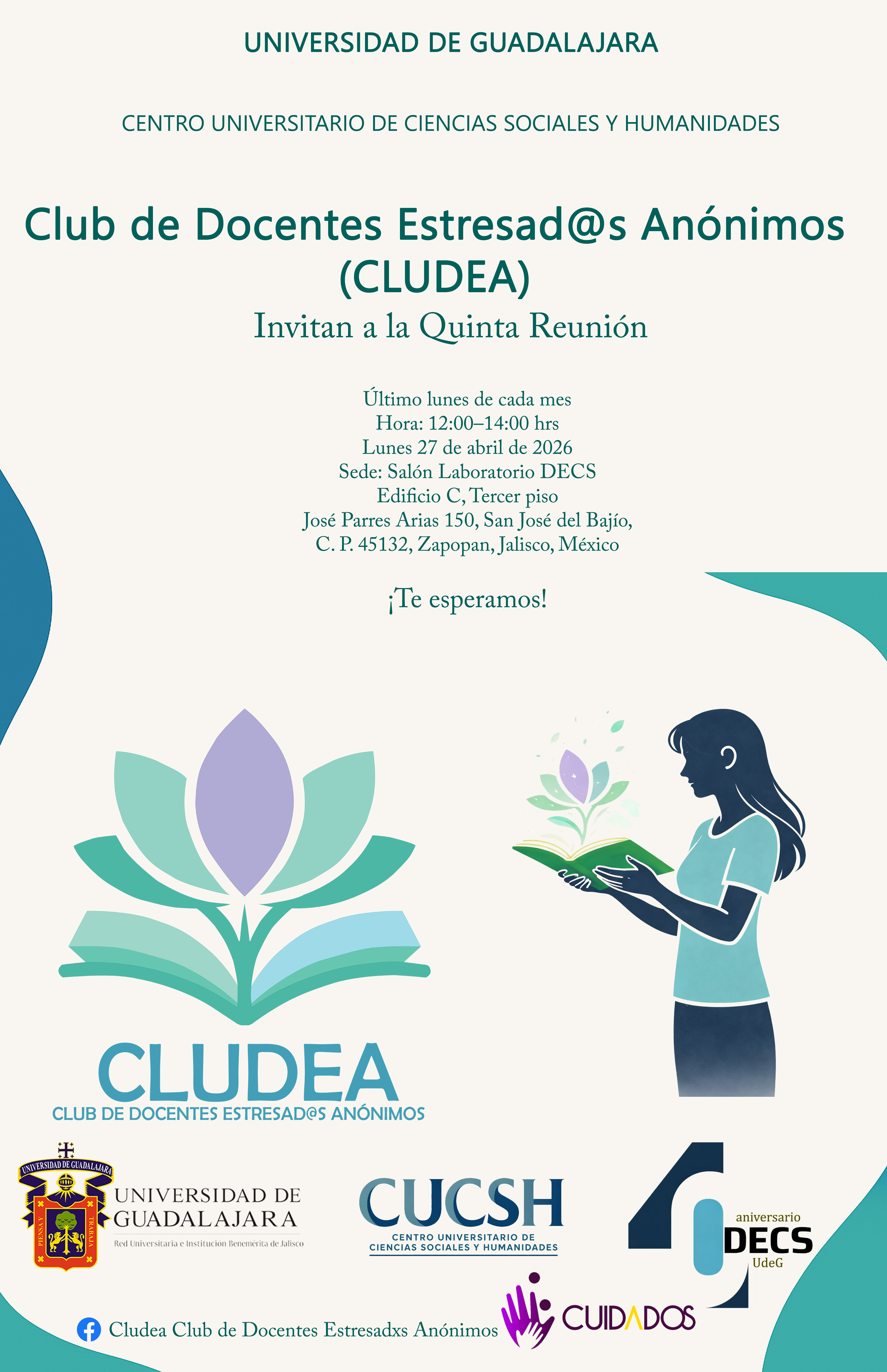 El Club de Docentes Estresad@s Anónimos (CLUDEA) del Centro Universitario de Ciencias Sociales y Humanidades te invita a participar en nuestra quinta reunión.