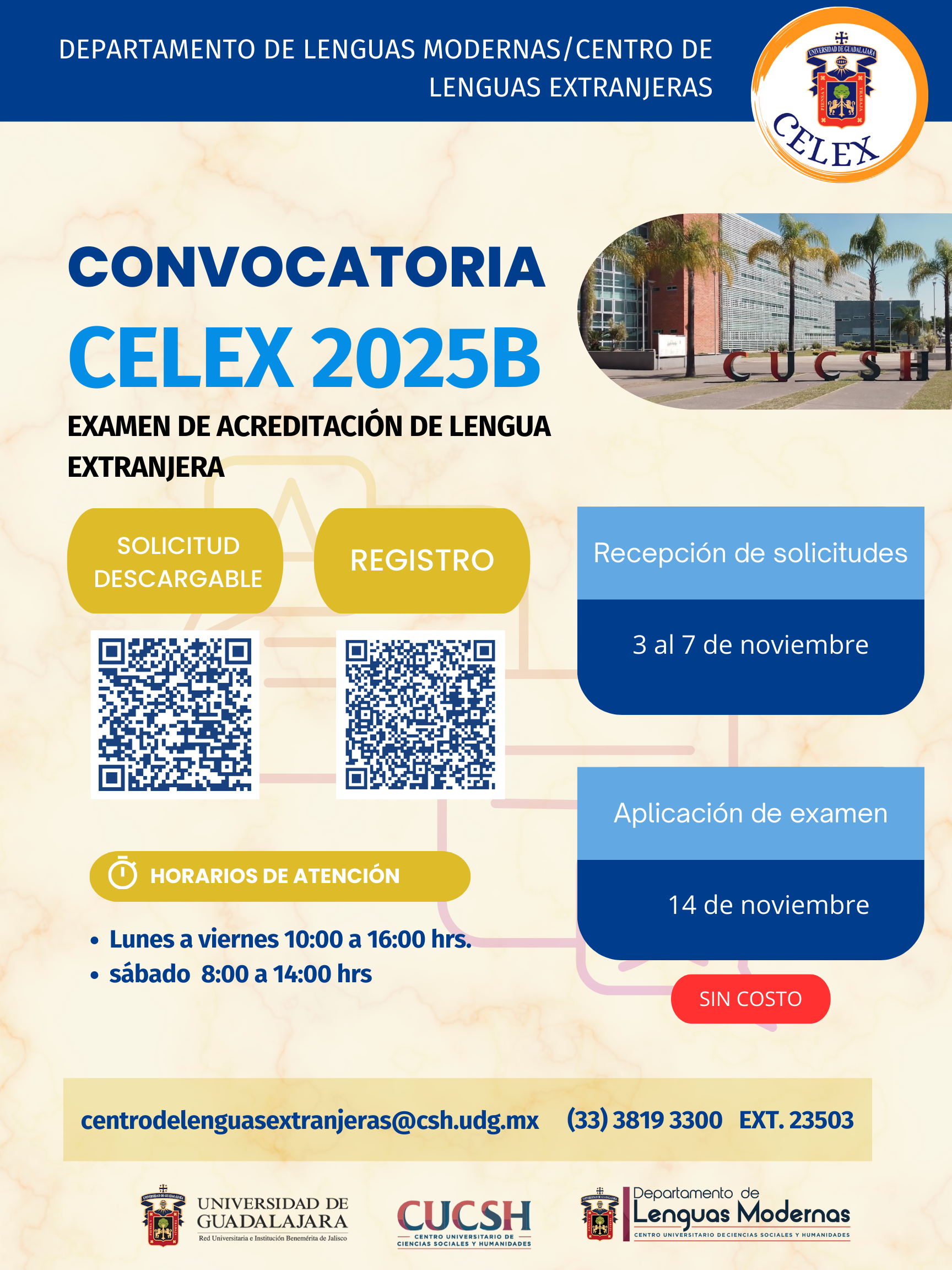 El Centro de Lenguas Extranjeras (CELEX) del Centro Universitario de Ciencias Sociales y Humanidades lanzó la convocatoria para la acreditación de lengua extranjera, misma que los estudiantes podrán realizar mediante dos modalidades: