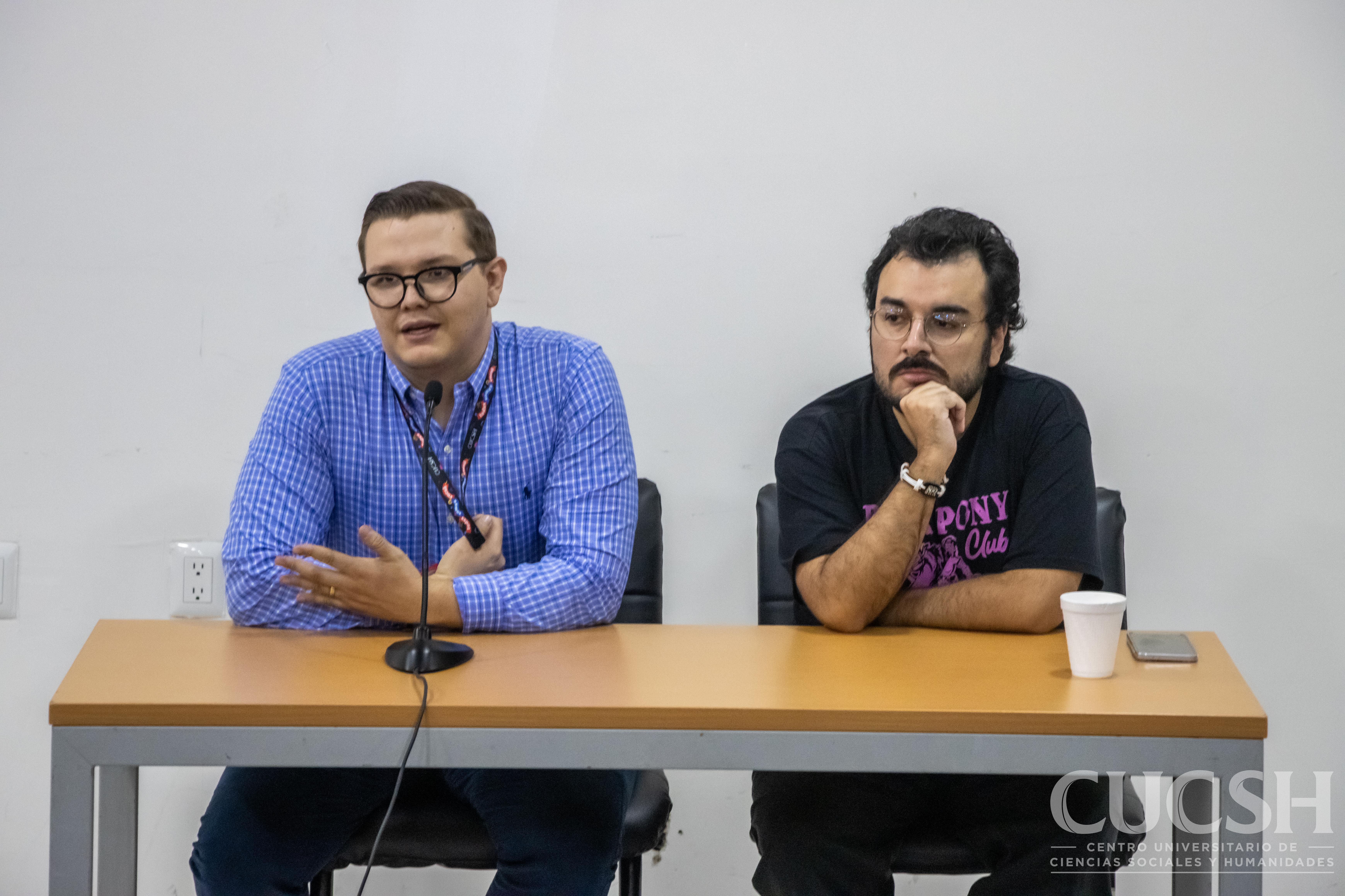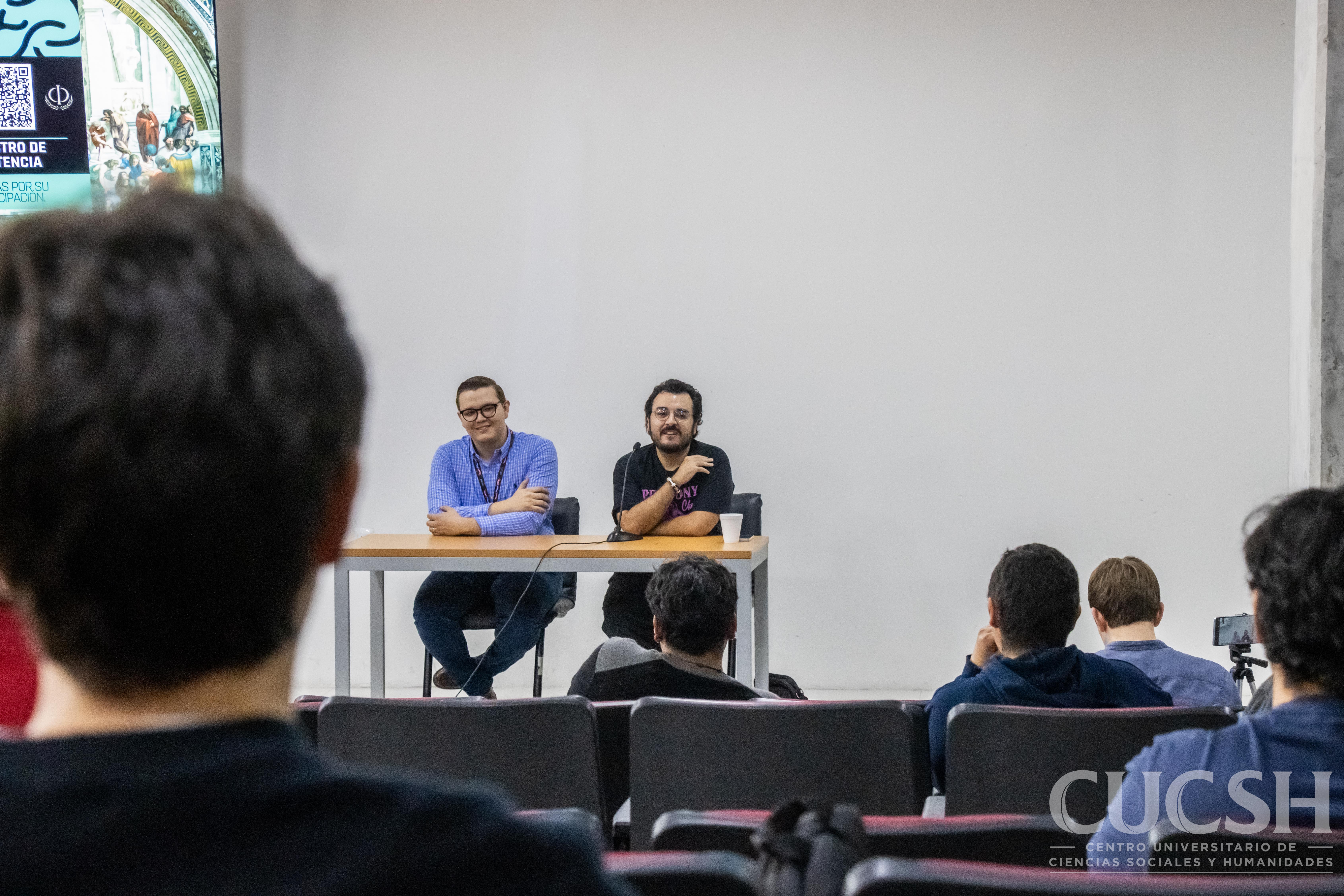 En el marco del Día Mundial de la Filosofía, el Centro Universitario de Ciencias Sociales y Humanidades (CUCSH) llevó a cabo la primera edición de “Rutas de pensamiento”, un encuentro dedicado a reflexionar sobre el papel actual de la filosofía y sus posibilidades fuera de la academia. La actividad contó con la participación de Gerardo López Sotelo, creador del proyecto Filosofía desde cero, y del Mtro. Mtro. Juan Jesús Conchas Rosales, coordinador de la Licenciatura en Filosofía del CUCSH.