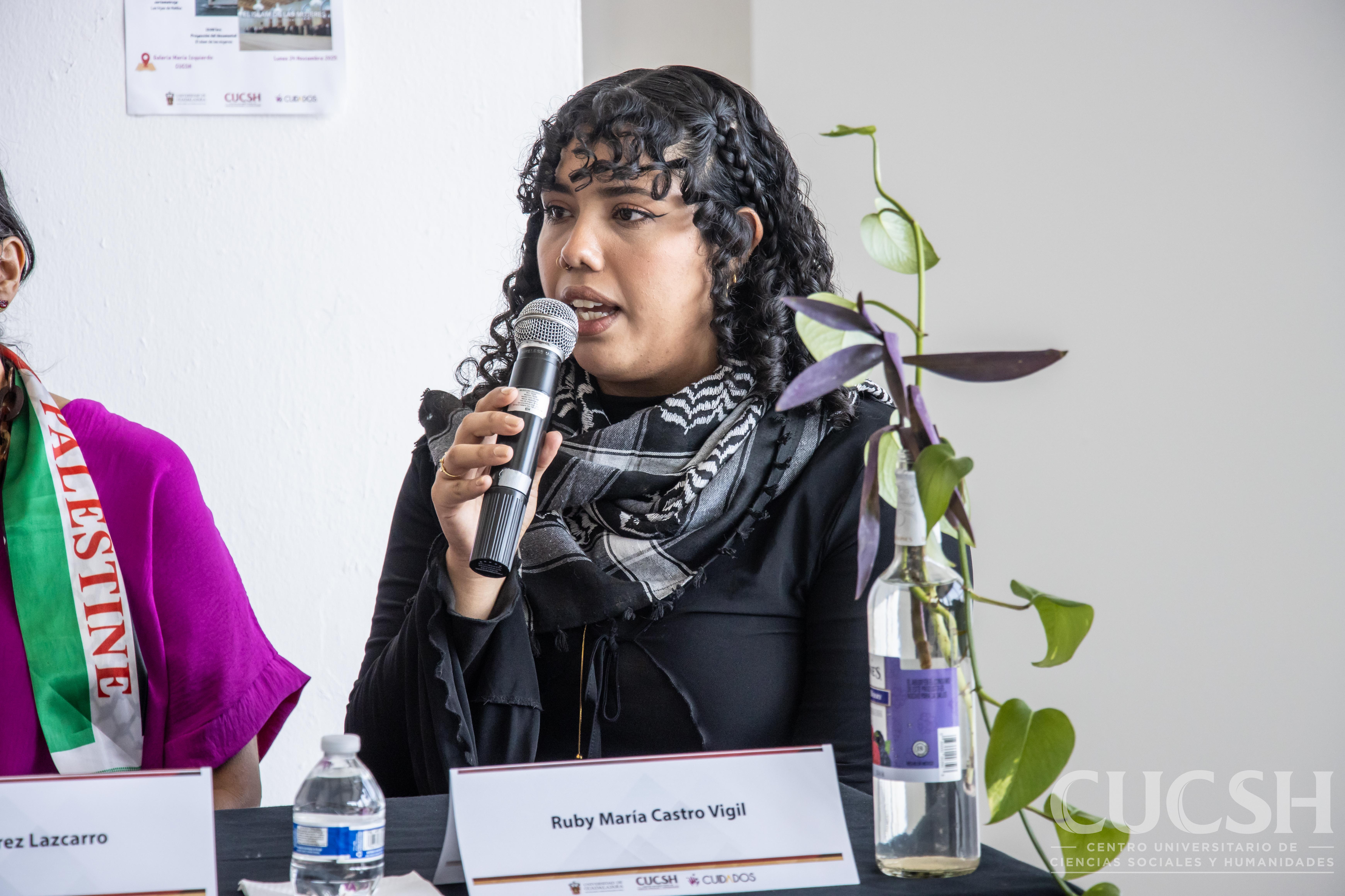 La maestra Margarita Jiménez, coordinadora de la unidad de Cuidados, explicó que la jornada busca generar conciencia crítica entre la comunidad universitaria, especialmente frente a los contextos de violencia que atraviesan mujeres en distintas partes del mundo. En esta línea, señaló que se incluyó la proyección del documental “De la Nakba”, con el fin de contextualizar la situación actual de las mujeres palestinas. Posteriormente, se contó con la participación de Dolores Lascarro, quien compartió su experiencia tras integrar este verano la flotilla de Global Summit.