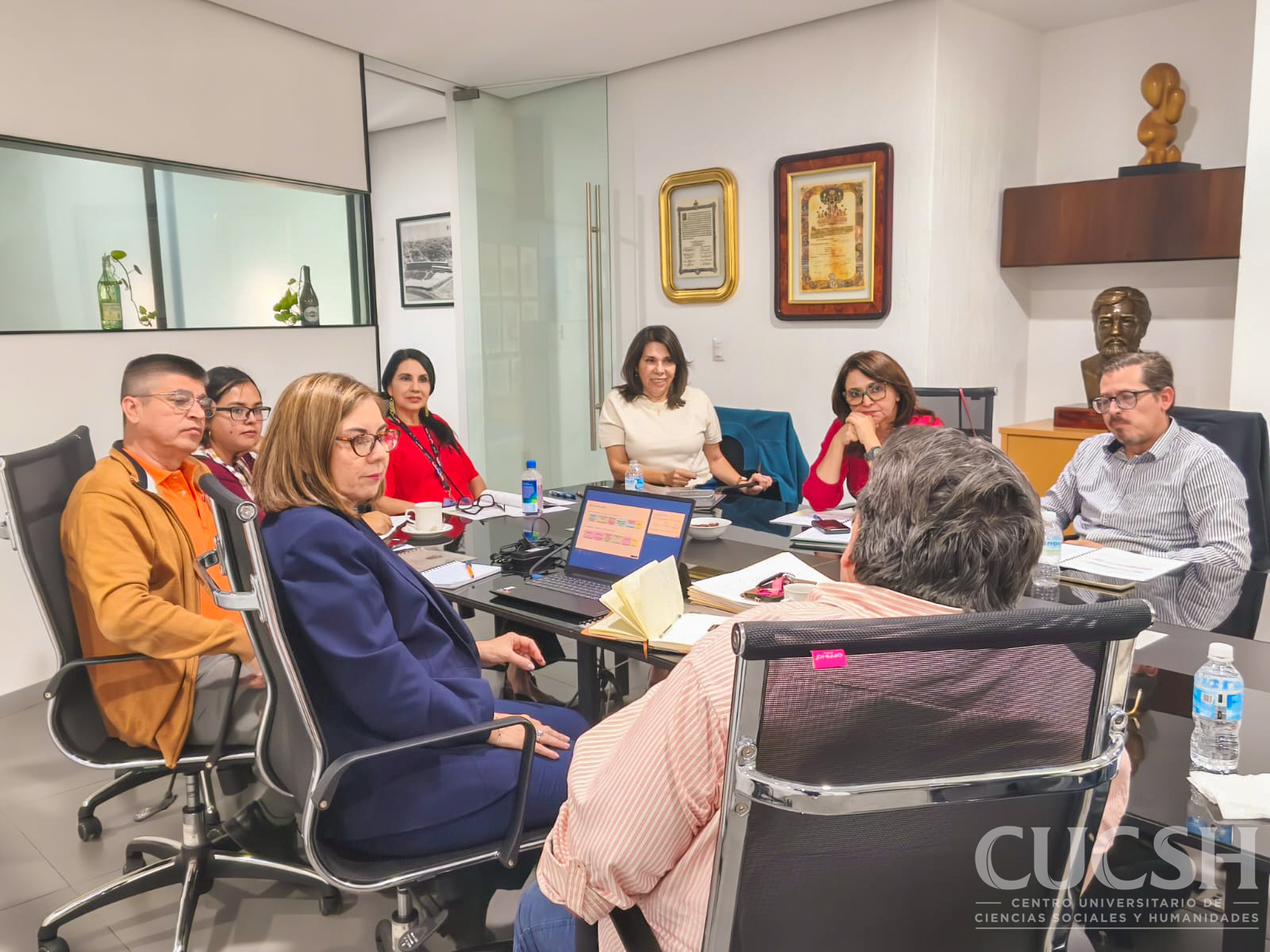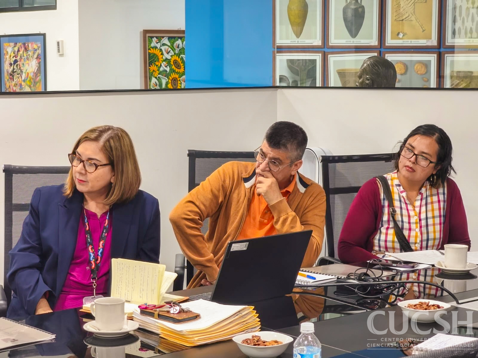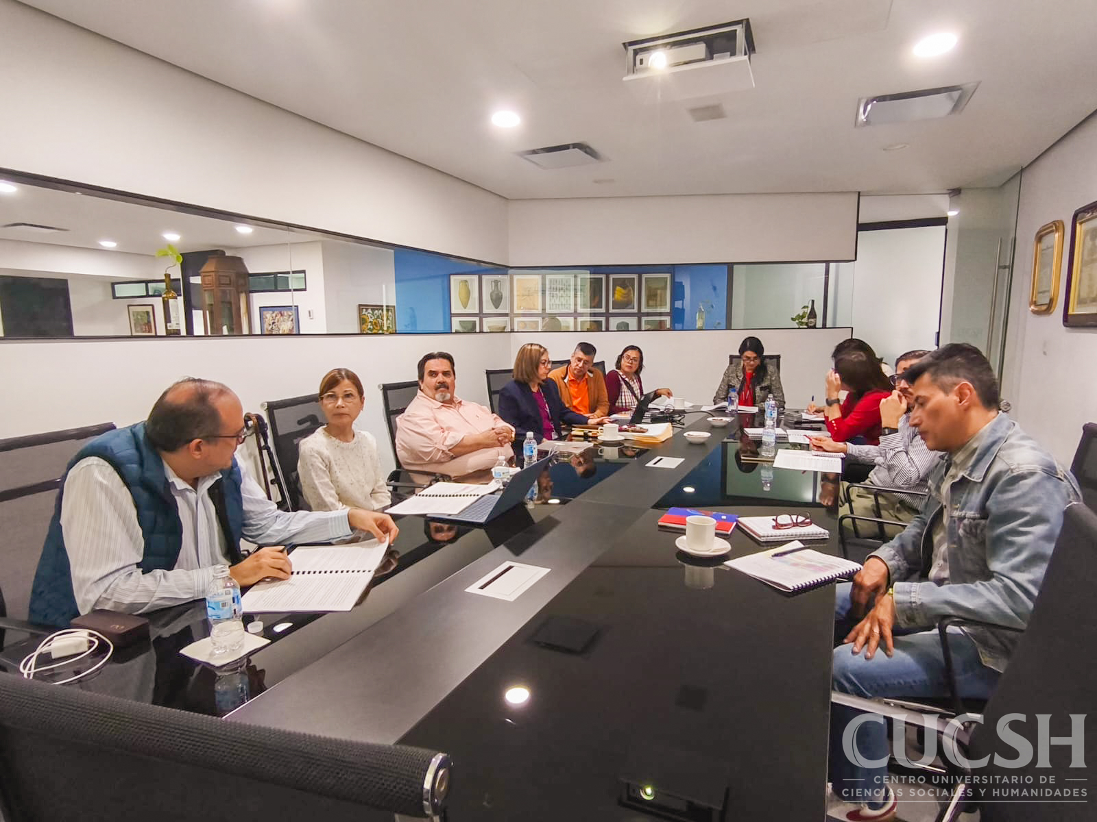 La sesión fue encabezada por la rectora del CUCSH, Dra. Dulce María Zúñiga Chávez, quien recibió al comité técnico del programa integrado por la Dra. Urith N. Ramírez Mera; el Coordinador del Doctorado en Cognición, Dr. Luis Alfredo Mayoral; la Jefa del Departamento de Educación, Dra. Teresita de Jesús Montiel; y el Dr. Juan Gerardo Martínez Borrayo, quienes expusieron los avances y fundamentos de la propuesta curricular. Asimismo, estuvieron presentes la Secretaria Académica, Dra. Patricia Córdova Abundis; la Coordinadora General Académica y de Innovación, Dra. María del Socorro Pérez Alcalá; el Coordinador de Desarrollo Académico, Dr. Luis Fernando Ramírez Anaya; el Coordinador de Docencia, Dr. Gabriel Barrón Pérez; y el Dr. Marco Antonio Cortés Guardado, director de la División de Estudios de Estado y Sociedad.