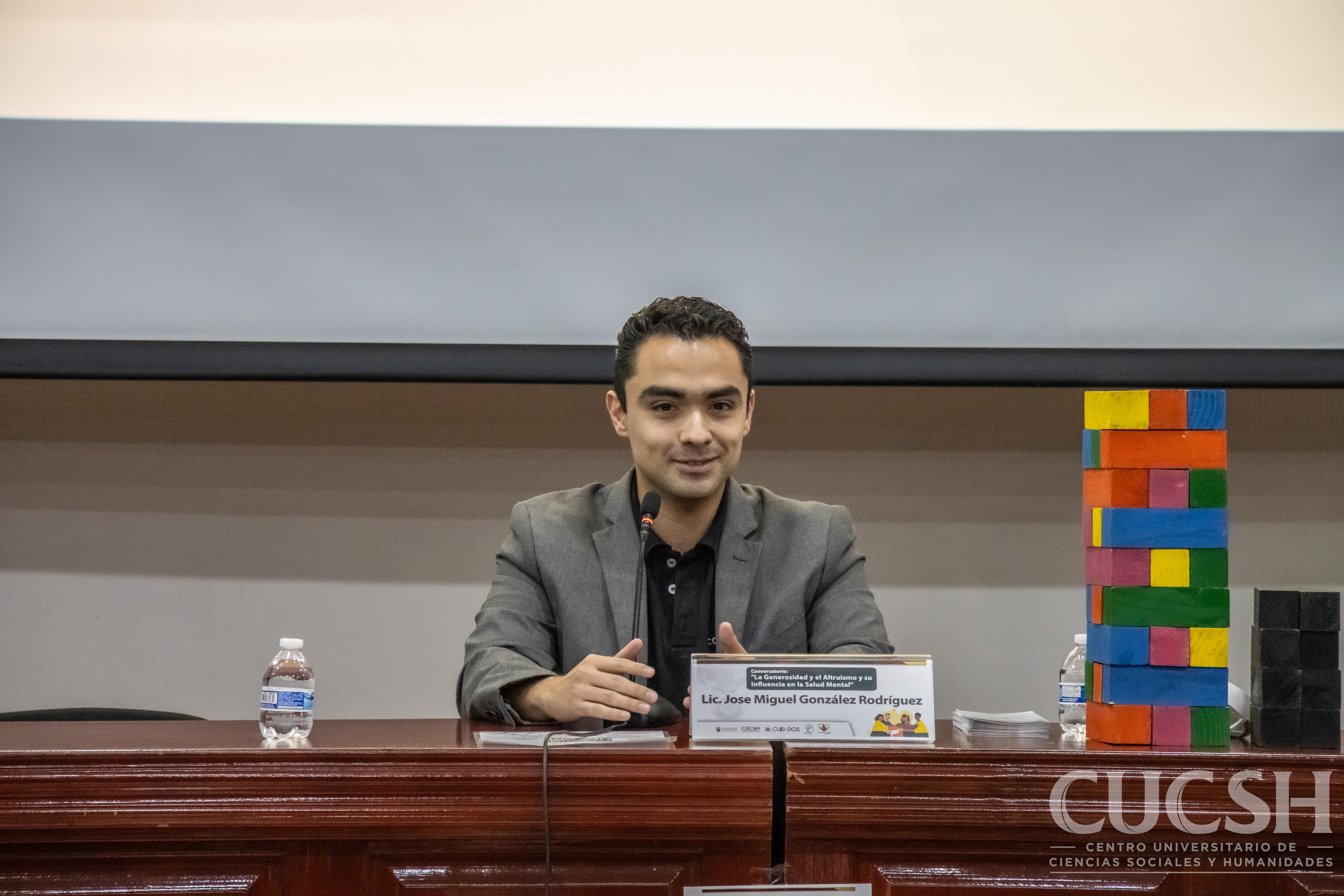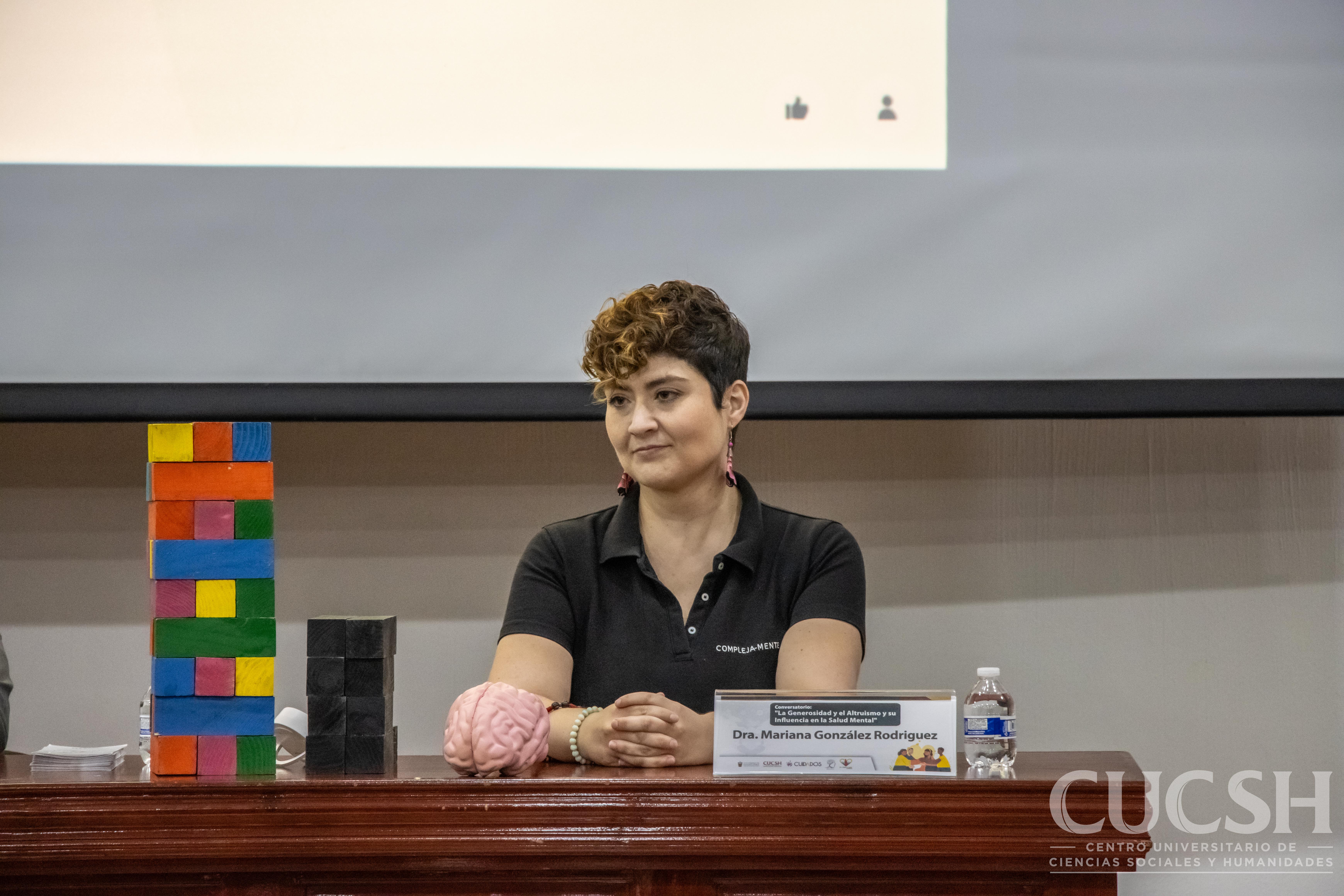 El evento se realizó en el Auditorio Rosario Castellanos del CUCSH, donde participaron la maestra Margarita Rodríguez Jiménez, coordinadora de Cuidados del centro universitario; el licenciado José Miguel González Rodríguez, gerente de desarrollo estratégico de COMPLEJA-MENTE A.C.; y la doctora Mariana González Rodríguez, presidenta de la asociación.