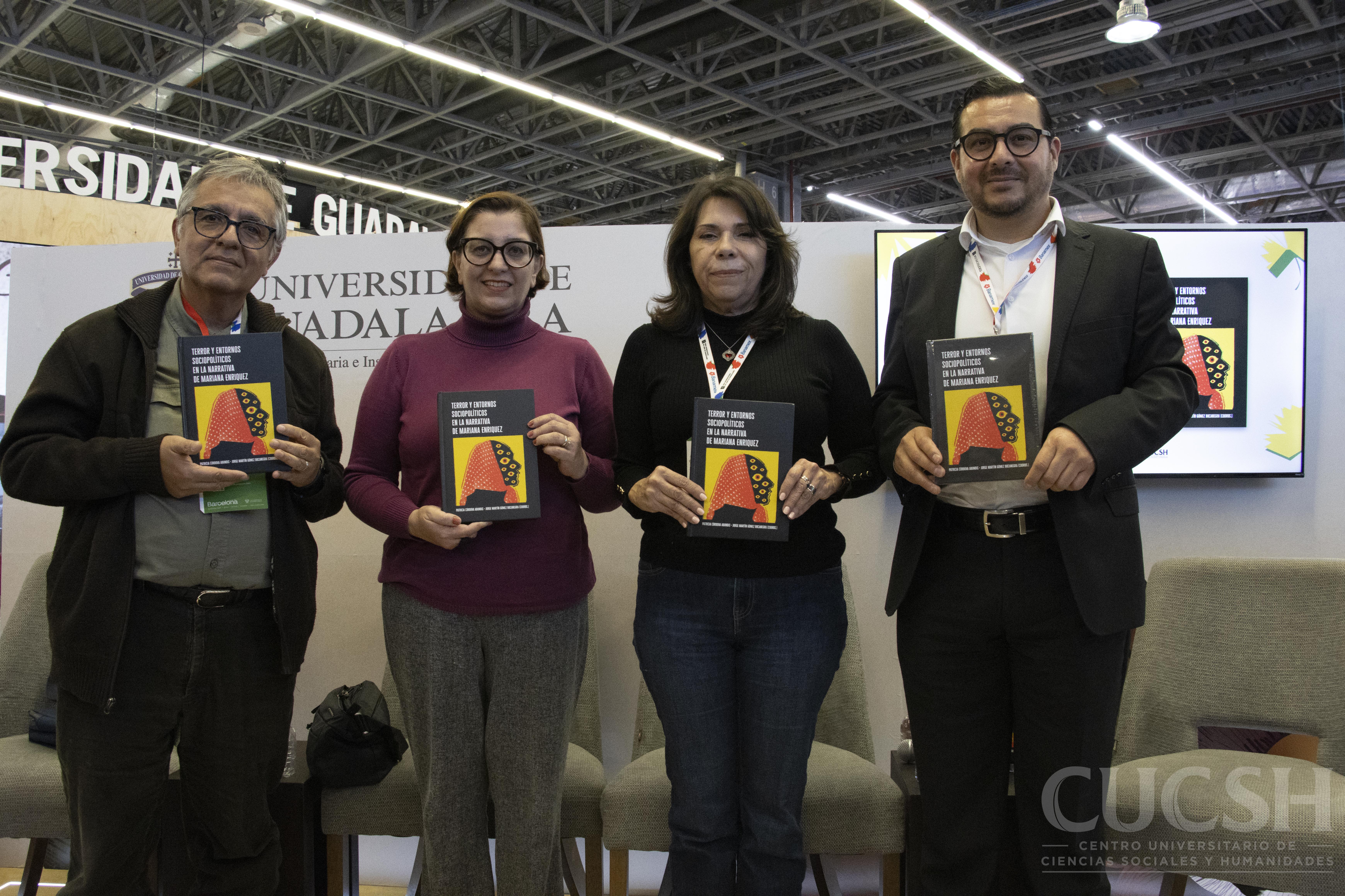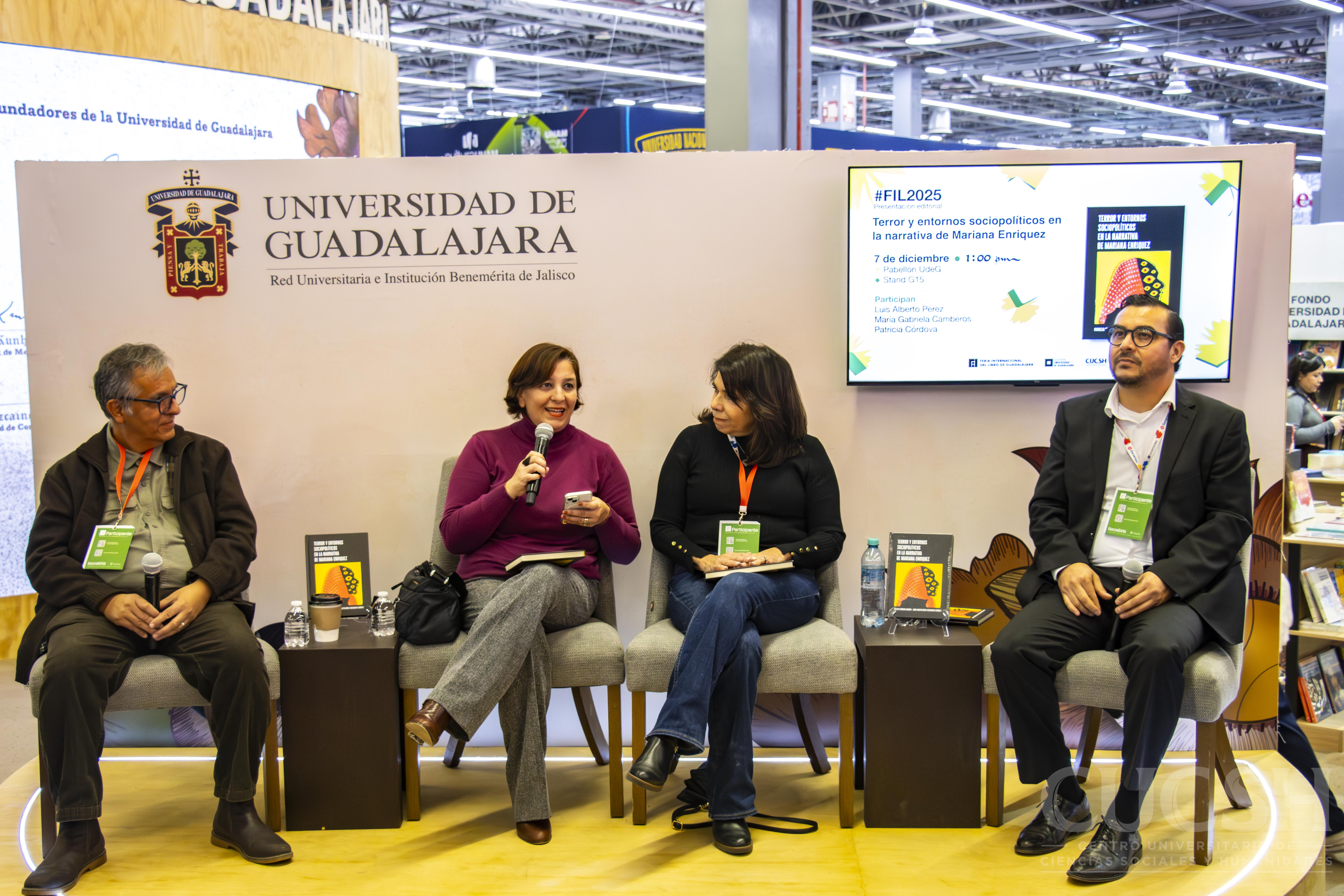 En el marco de la Feria Internacional del Libro de Guadalajara 2025, este domingo 07 de diciembre se llevó a cabo la presentación de “Terror y entornos sociopolíticos en la narrativa de Mariana Enriquez”, una obra colectiva que reúne a investigadores del CUCSH y propone nuevas lecturas sobre la escritora argentina, una de las voces más influyentes del terror contemporáneo en lengua española.