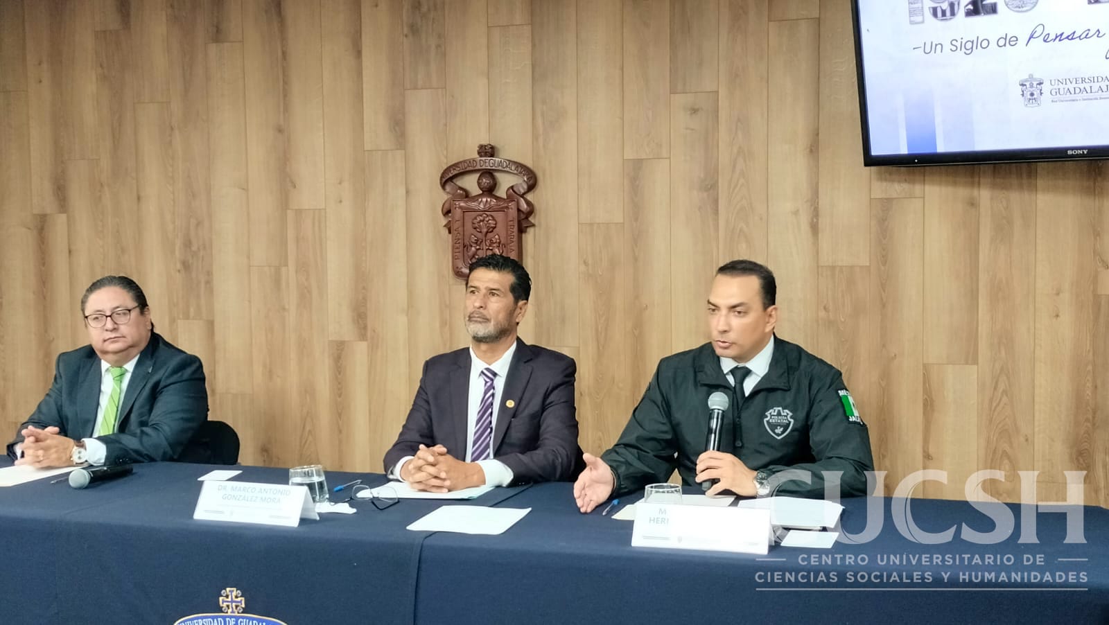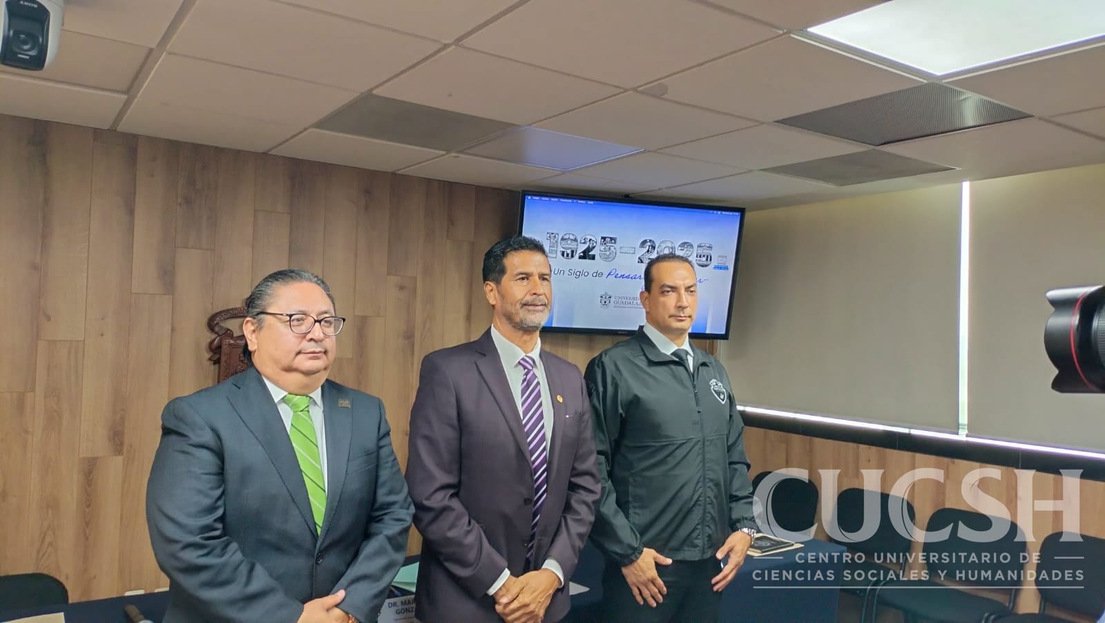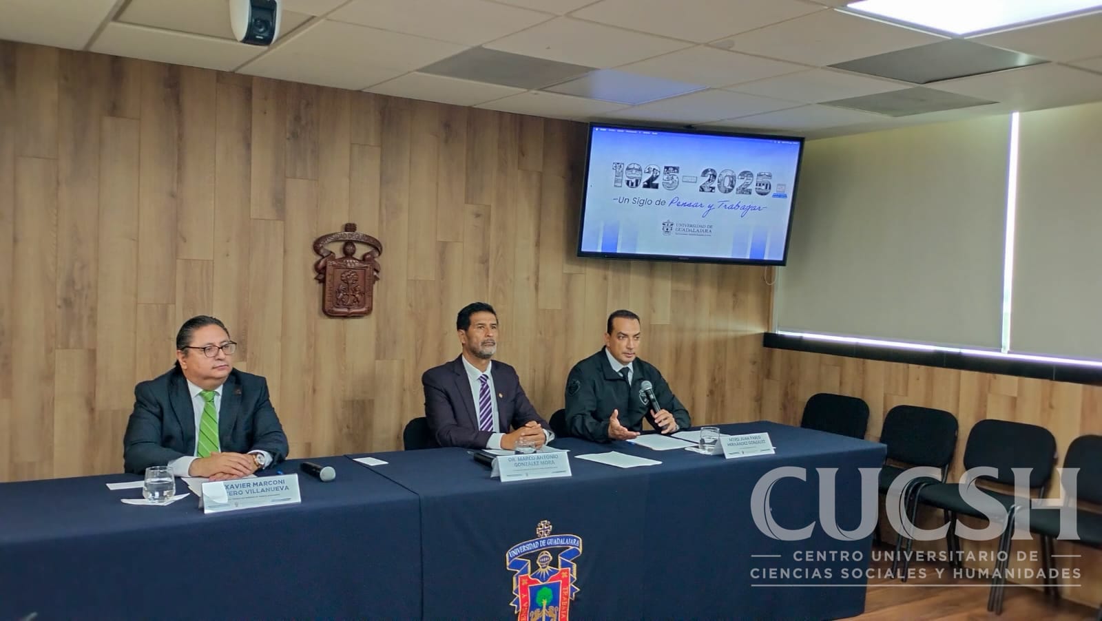 El pasado 09 de septiembre, se llevó a cabo una rueda de prensa donde autoridades universitarias y representantes de organismos públicos anunciaron una serie de acciones y convenios para fortalecer los Bufetes Jurídicos de Servicio Social del CUCSH, con un enfoque renovado en justicia alternativa y prevención de conflictos sociales. El objetivo fue anunciar la ampliación de los servicios legales ofrecidos por esta instancia universitaria, mediante convenios colaborativos interinstitucionales con el Instituto de Justicia Alternativa (IJA), la Secretaría de Seguridad Pública del Estado (SSP) y el Colegio Nacional de Educación Profesional Técnica (CONALEP).