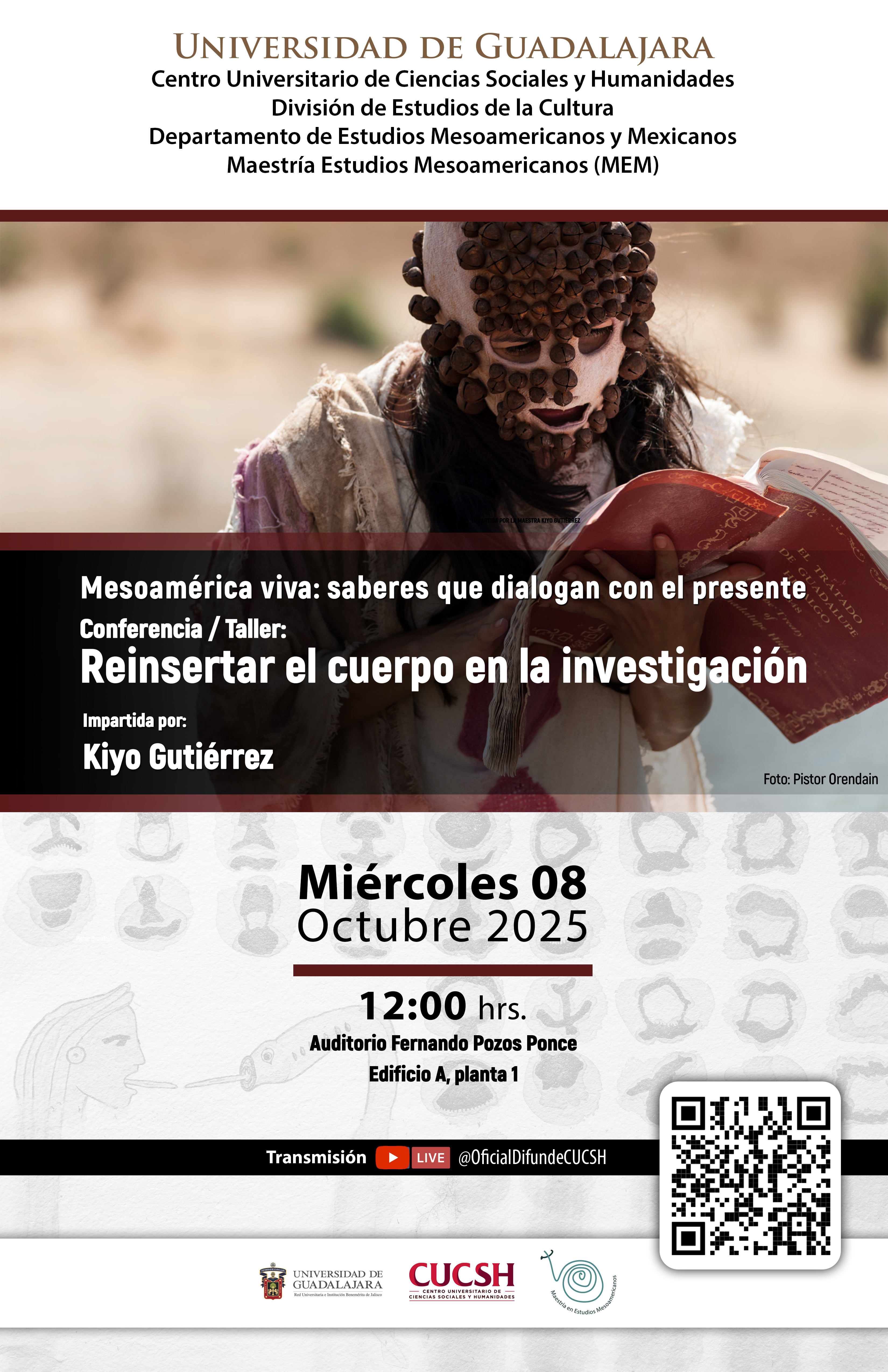 La actividad forma parte del ciclo Mesoamérica viva: saberes que dialogan con el presente, y busca reflexionar sobre la investigación desde una perspectiva que involucra el cuerpo, la memoria y la experiencia.