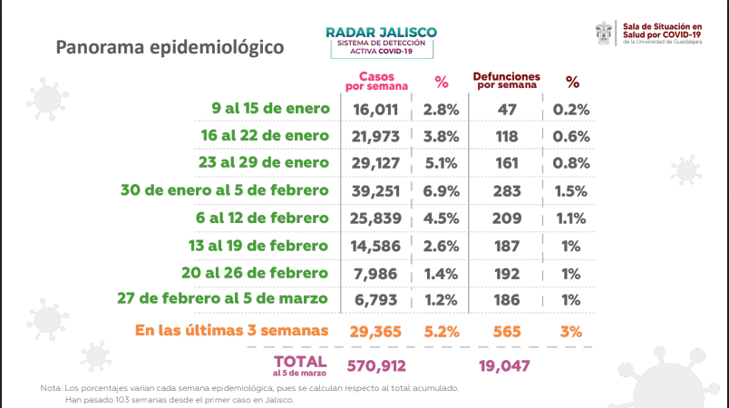 Panorama Epidemiológico COVID-10. Del 27 febrero al 05 marzo de 2022.