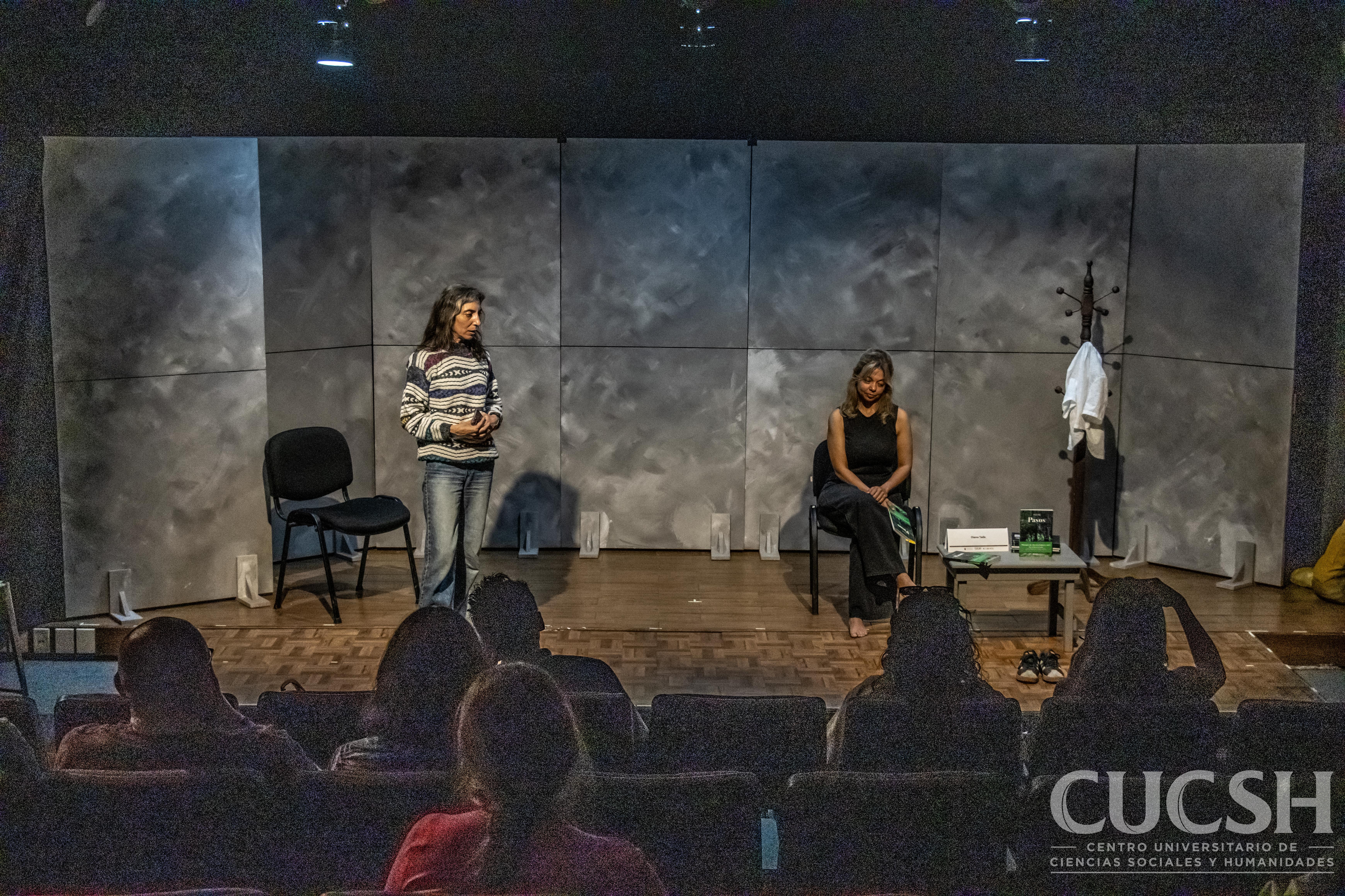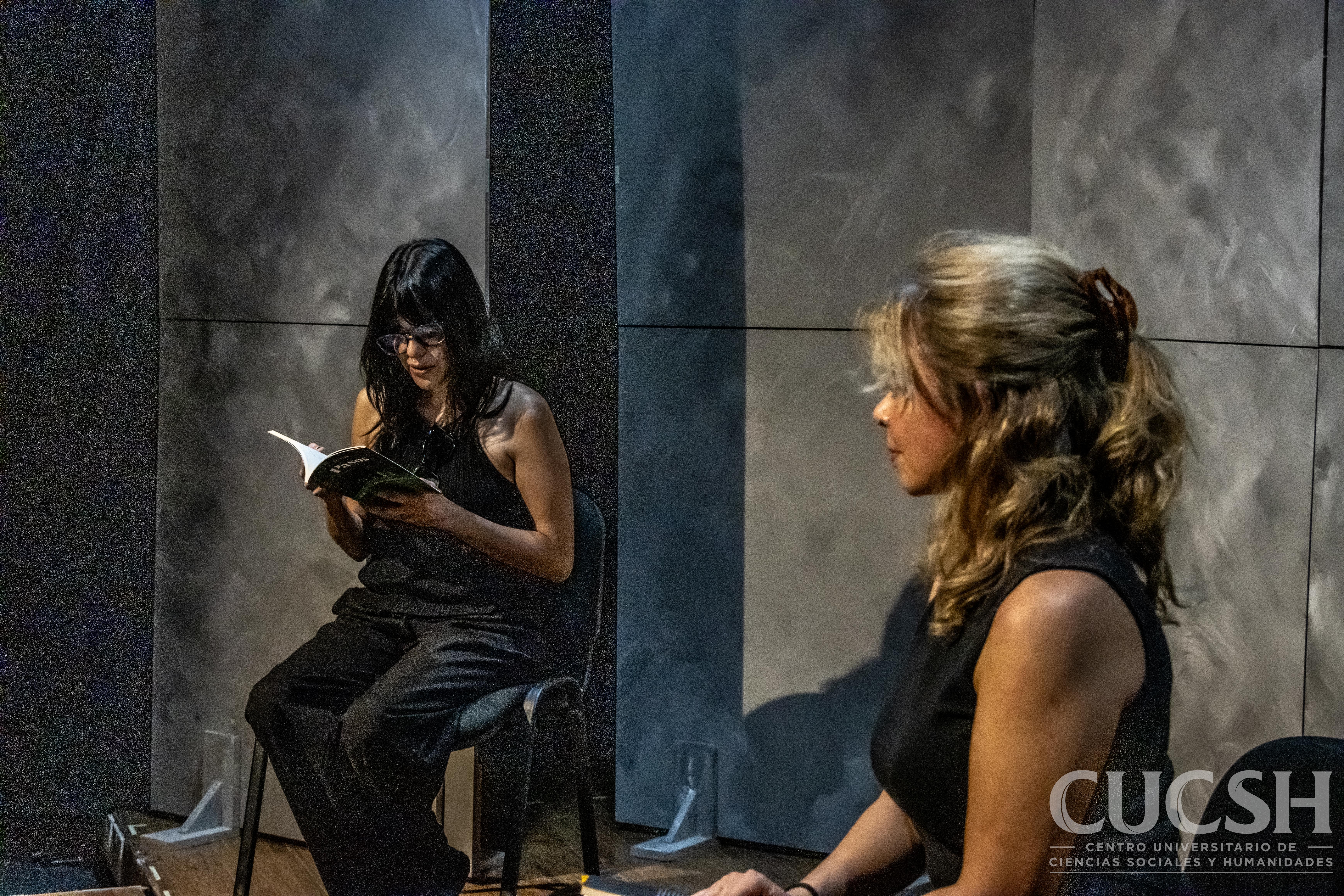 En el Teatro Jurídico del Centro Universitario de Ciencias Sociales y Humanidades (CUCSH), y bajo la organización de la Coordinación de Cuidados, la dramaturga Diana Tada presentó de manera performática su libro PASOS, en un ejercicio escénico que acercó al público a la esencia conceptual y dramatúrgica de su obra.