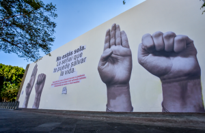 La estrategia consiste en el mural Señales de auxilio, que ejecuta el personaje anónimo Capitán Haddock, sobre una pared del Excine del Estudiante, en la rambla Cataluña y la exposición de mamparas Redes de apoyo, con frases de empatía y apoyo para mujeres que viven violencia, mensajes propuestos por estudiantes del SEMS.